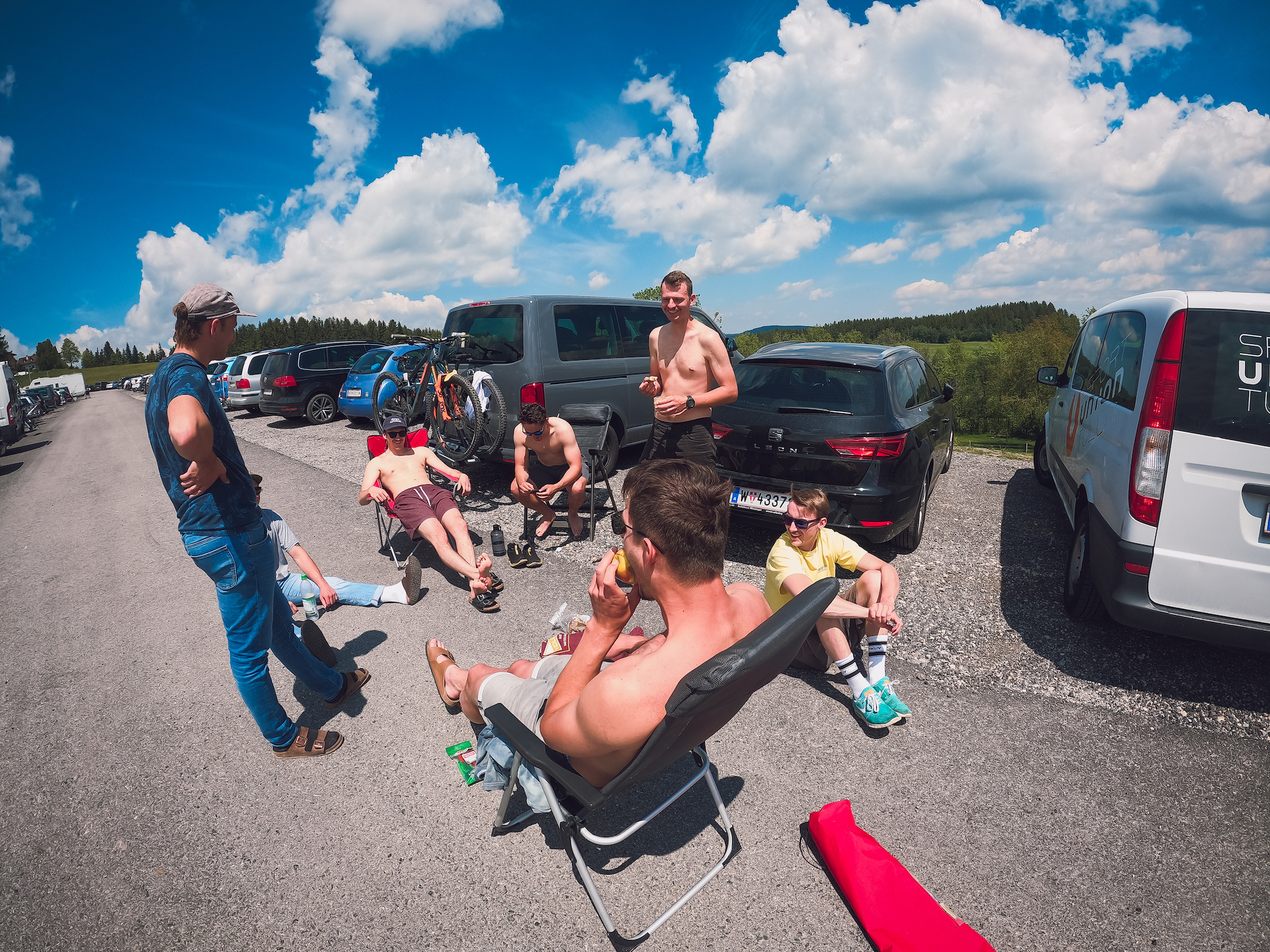 After a good day of riding we set up a campside at the parking place of the bikepark which is no problem in Austria. We refuled and of course had a after ride beer or two.