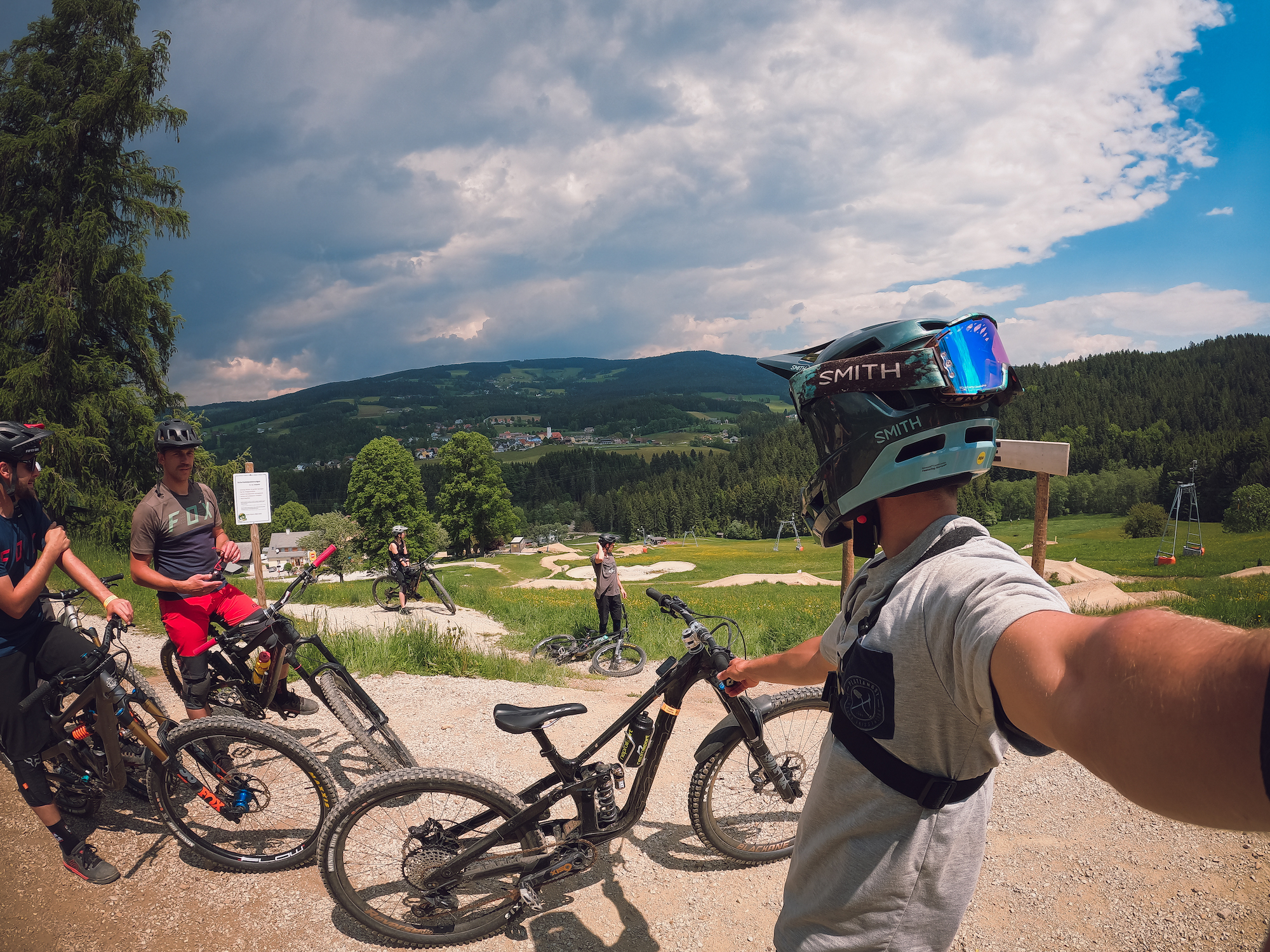 Funnily enough our first stop after good 4 hours of driving was a village called *St.Corona* with it’s bikepark called Wexltrails. And as we had almost thought, no one asked for any of our documents on the way there.