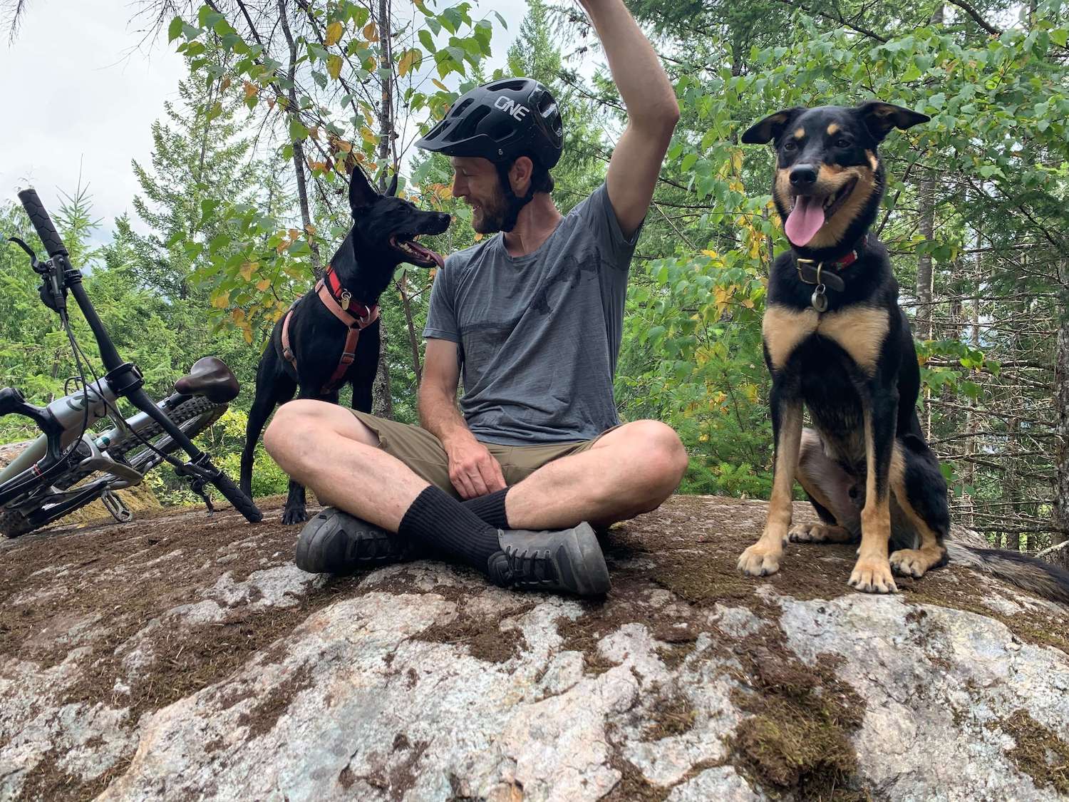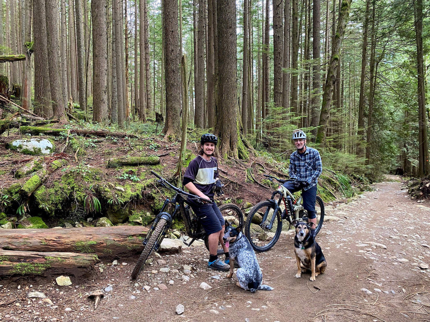 Riding with dogs is the absolute best. Always pumped to join no matter the weather. Begbie is a trail dog thru and thru and will be salty with me if I can’t take him on the ride. Wren is joining the party late as a rescue, but loves chasing her brother and digging all the dead stumps she sees on our rides. The forest is where they are most at home.