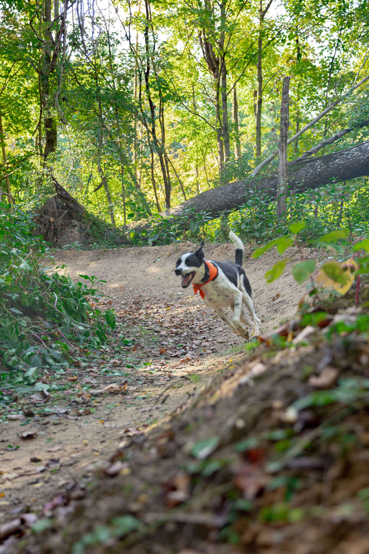 When we adopted Stevie from our local humane society, we were looking for a pup that could run with us on the trail and be comfortable at the trailhead or local watering hole afterward. After some dedicated work, lots of practice, and a little innovation (get a bell for your trail dog!), she’s a terrific and trustworthy trail dog. If we leave the house with bikes and don’t grab her jingle bell, she holds a grudge for quite some time.