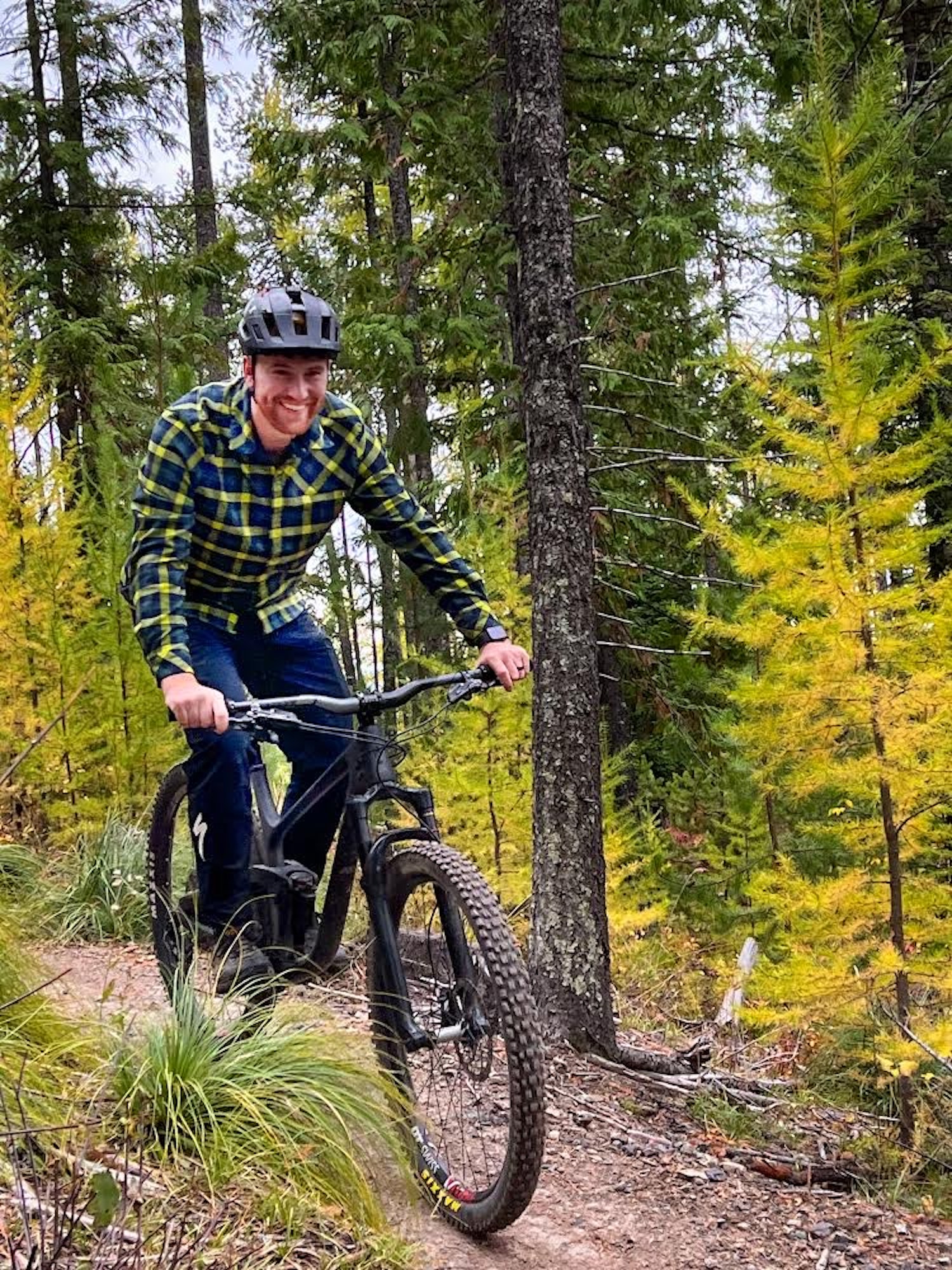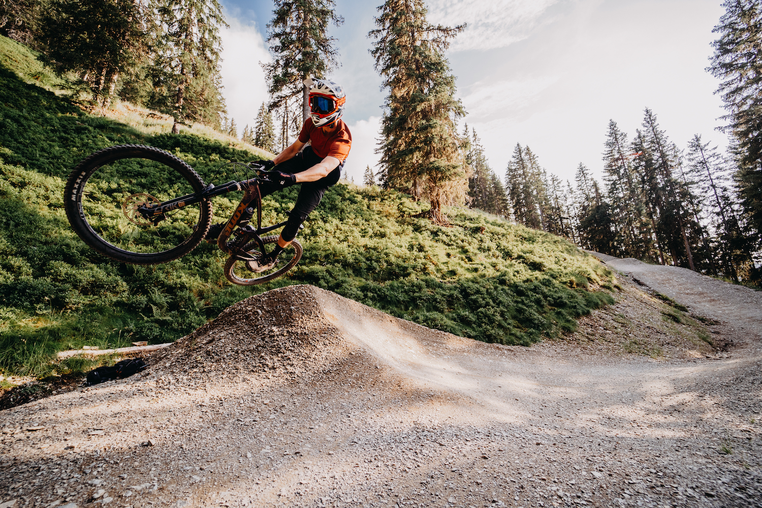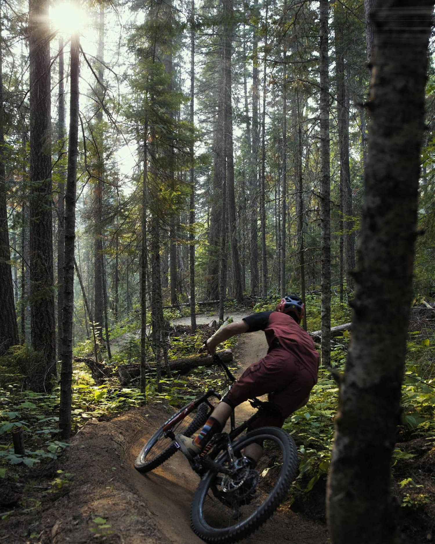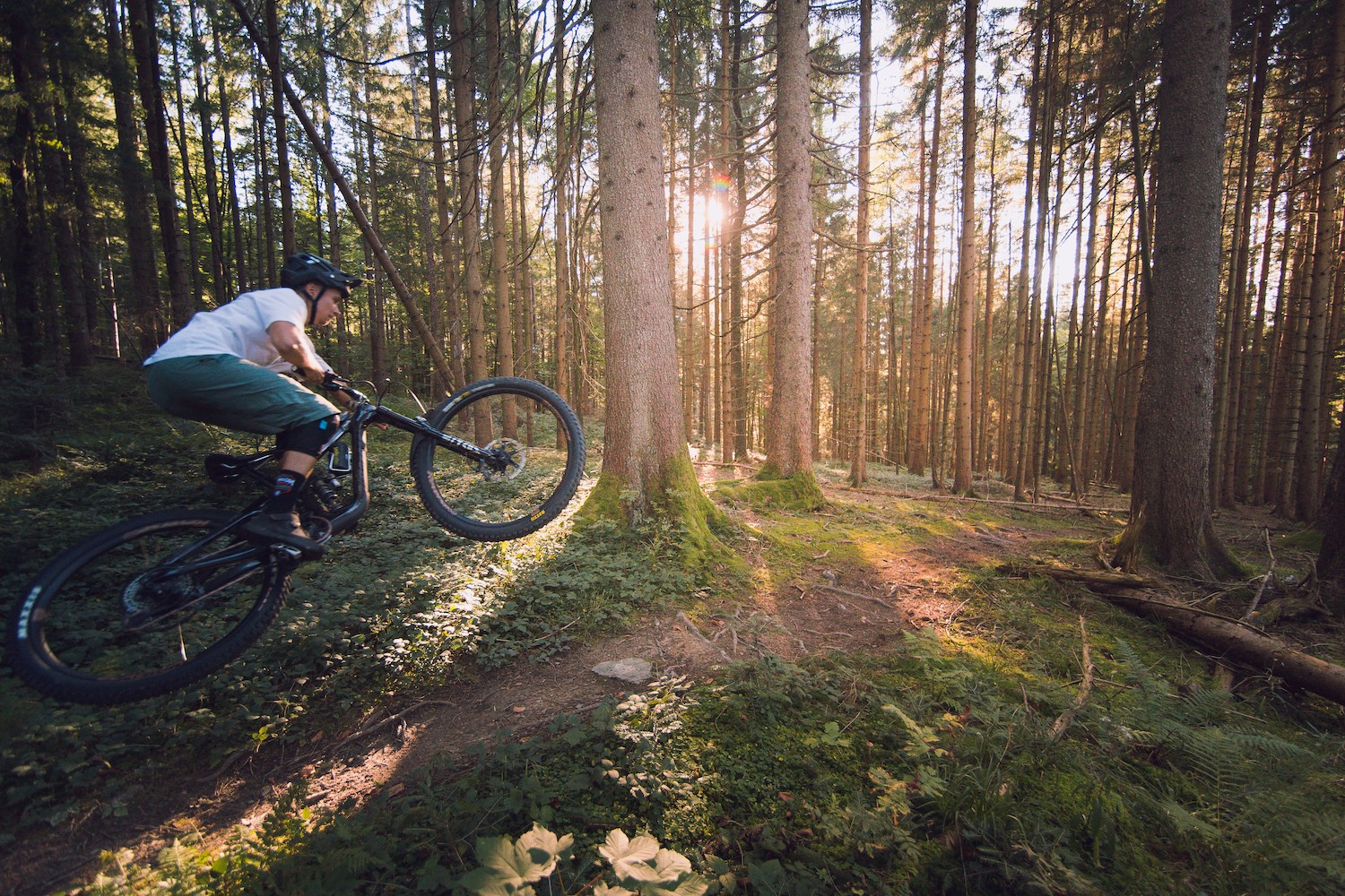 Why I Chose This Photo: Golden hour, low lying sun, loamy trails in the fresh-looking green woods. These are my favourite conditions at home. Just some after-work laps on trails like this and my mind is satisfied.