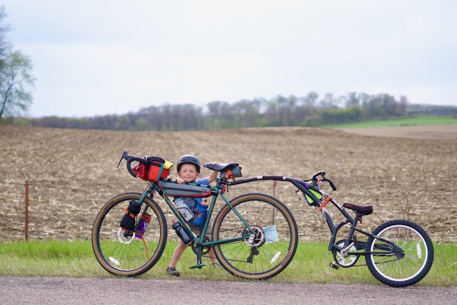 Why I Chose This Photo: For Father’s Day in 2020, my wife gifted me a trail-a-bike for pulling our oldest son. He couldn’t reach the pedals so we voile strapped some wooden blocks so he could reach. Now we’ve gone on so many fun adventures together flying through farm country and the wooded north. This photo is from when we biked to a burger farm for supper earlier this year.