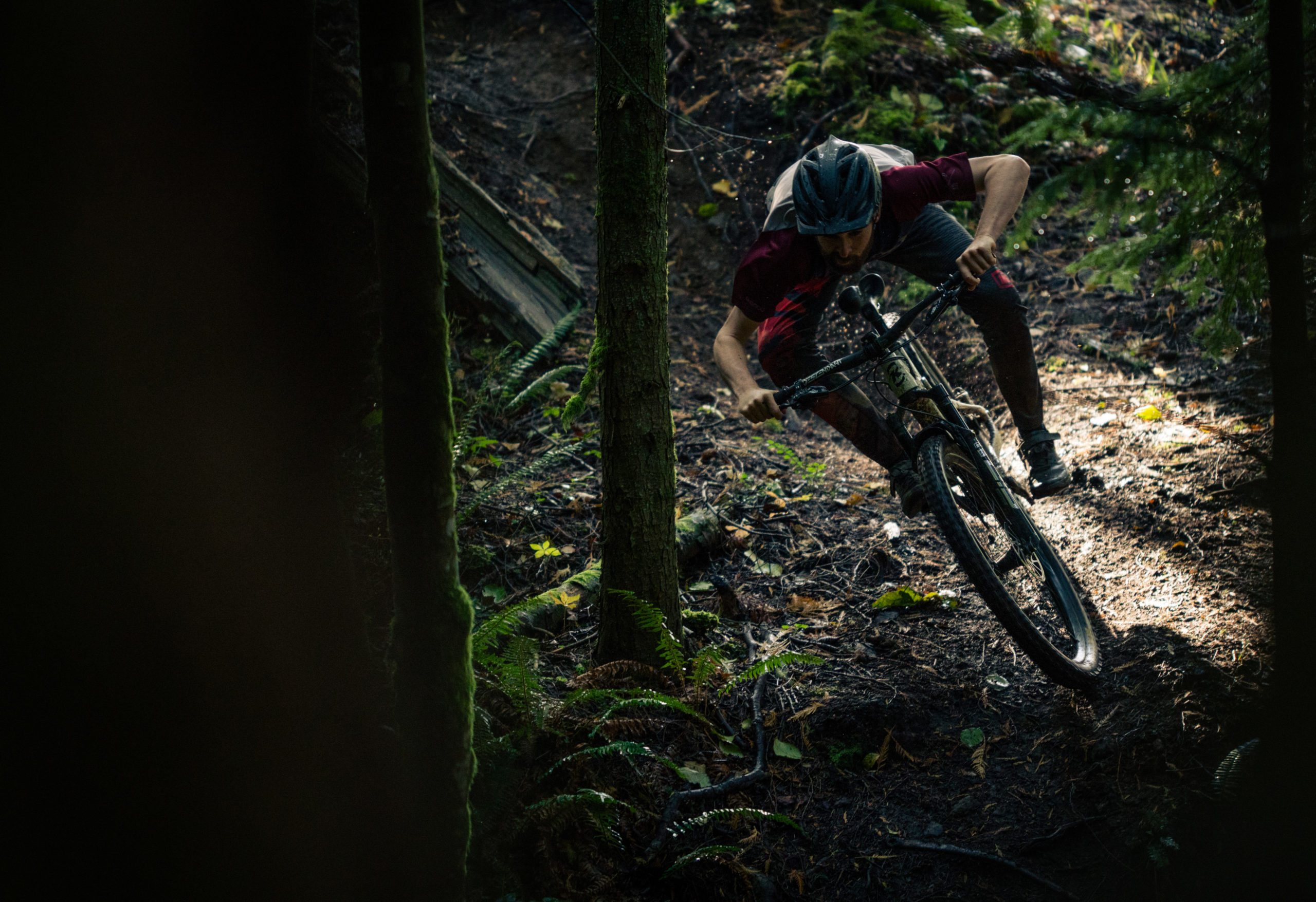 The carbon Hei Heis provide 120mm of front and rear travel, but make no mistake—this bike can punch above its weight. We shot this project in Bellingham during some NASTY weather on some rowdy sections of trail and we were stoked to see how well the bike performed over and over again.