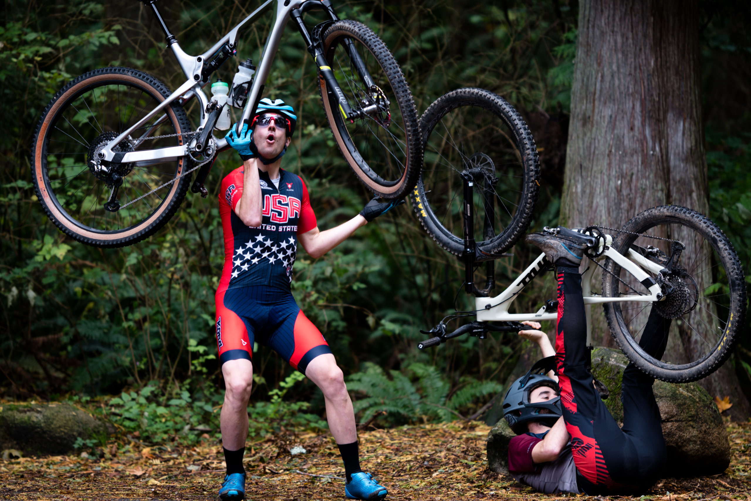 Long-time riding buddies Spencer and Donny have grown apart in their riding ways. One is the ultra XC hardtail guy and the other is stuck in a world of Downhill (and Rainer). How can they reconcile their differences? Fortunately Dr. Paddy White, a highly unlicensed therapist has just the thing: The all-new Hei Hei CR! This bike blends the best of XC and enduro into one lean machine. One ride and their woes are behind them! That’s what we call Bicycle Therapy.