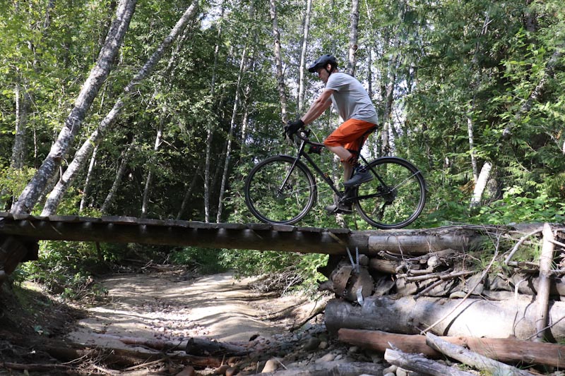 “I was pleased to find rear wheel traction on climb sections was better than expected. Whether I was sitting or standing up, that skinny rear wheel had ample weight on it and despite my inexperience, I shot up some steep gravel/dirt sections with no problems.“