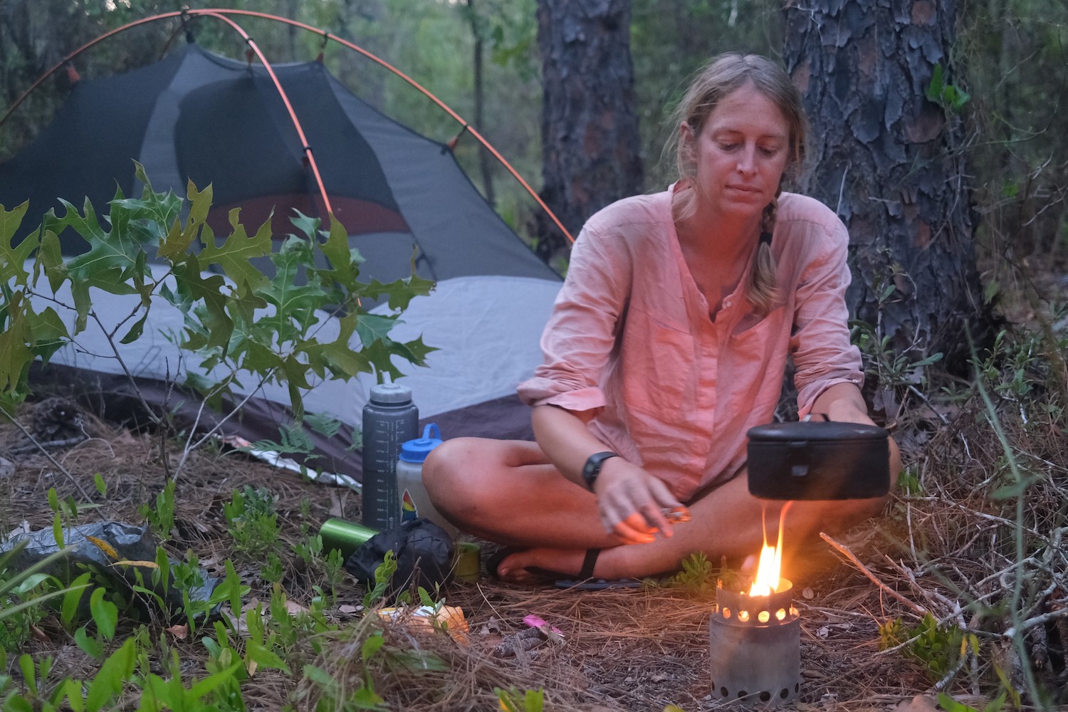 Pic 10: Boiling water in the backcountry to make a meal out of foods my mom and I foraged and dehydrated.