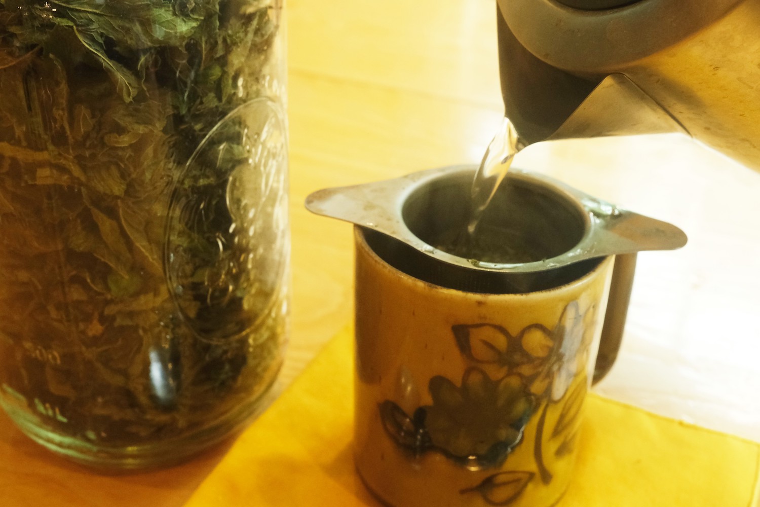 There are many ways to strain herbal tea. Some people use stainless steel tea balls or cloth sacks. I prefer a stainless steel mesh strainer that fits on top of a mug or mason jar. I find this method easy to use and easy to clean.