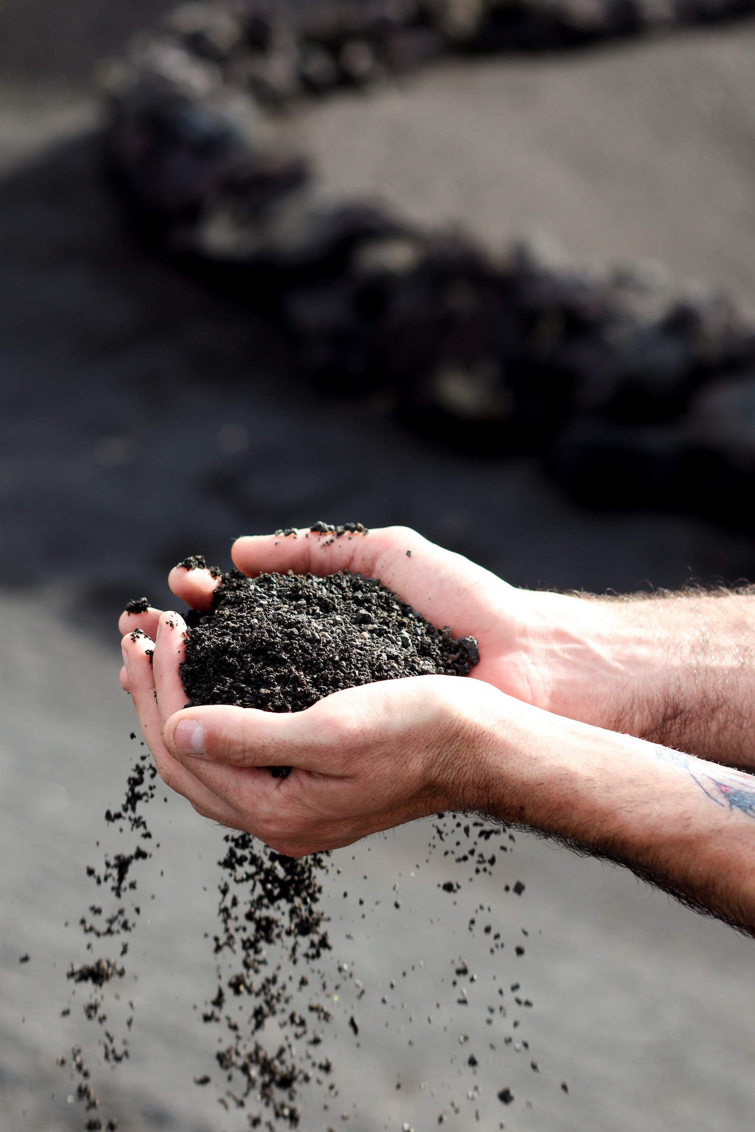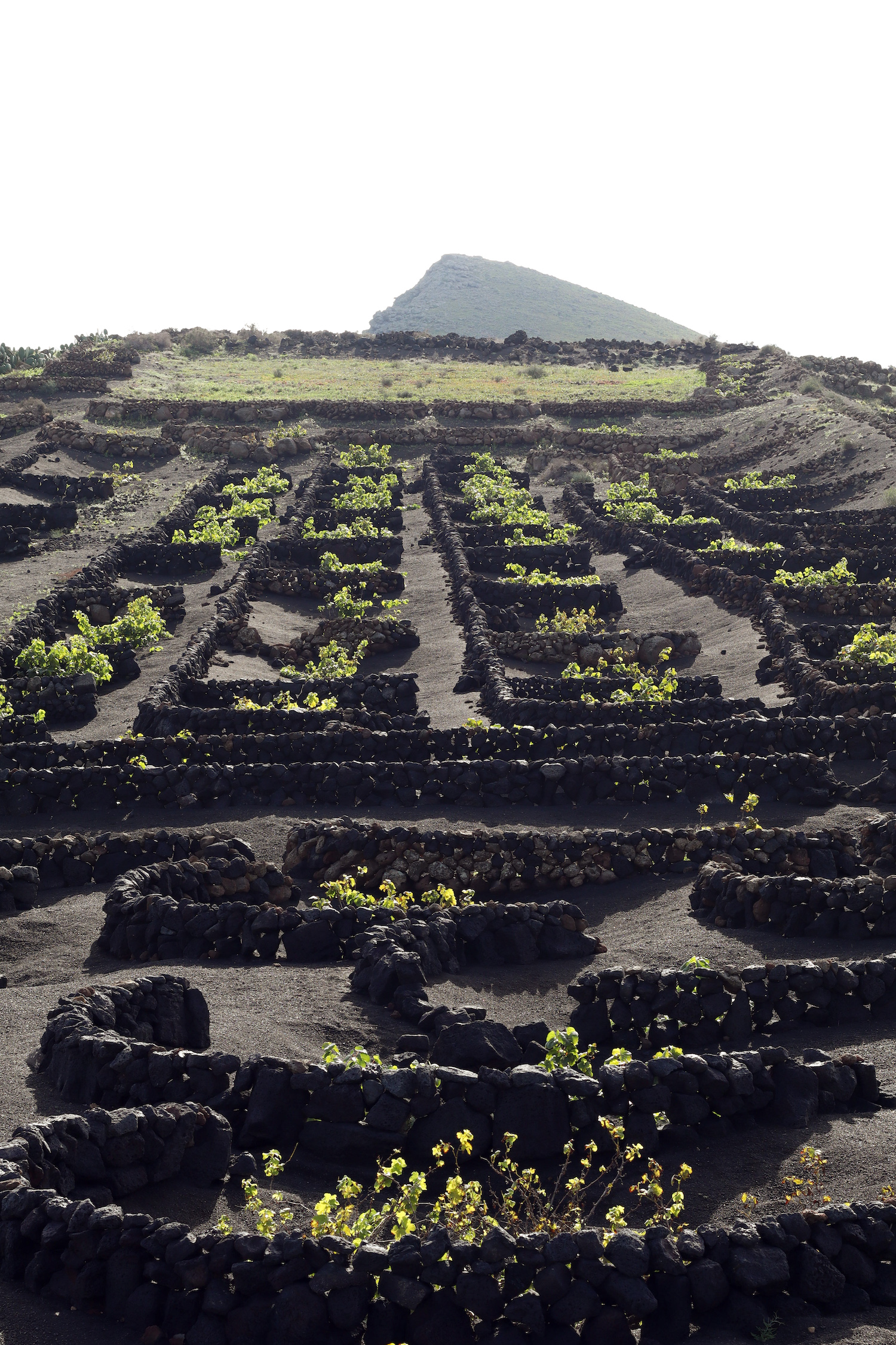 The next morning, woke early and visited the beach of El Golfo. We rode through an empty stretch of road to get to it, which looked like something out of the movie Jurassic Park. The contrast of the green from the little existing vegetation, the brown and black tones of the volcanic lava, and the intense blue of the ocean made this bike tour incredible. I remember that we hardly spoke during that section, because words were not needed. We just wanted to feel and enjoy the moment. We found the beach empty; we enjoyed it a bit and we continued on our way toward La Geria. This town is famous for its wines, and it is hard to believe that vines can flourish in a landscape like this. But even more amazing is stopping to think about how humans, helped by camels, have modeled the terrain over several hectares, building holes in the ground surrounded by volcanic rock that protects these plants from the wind.