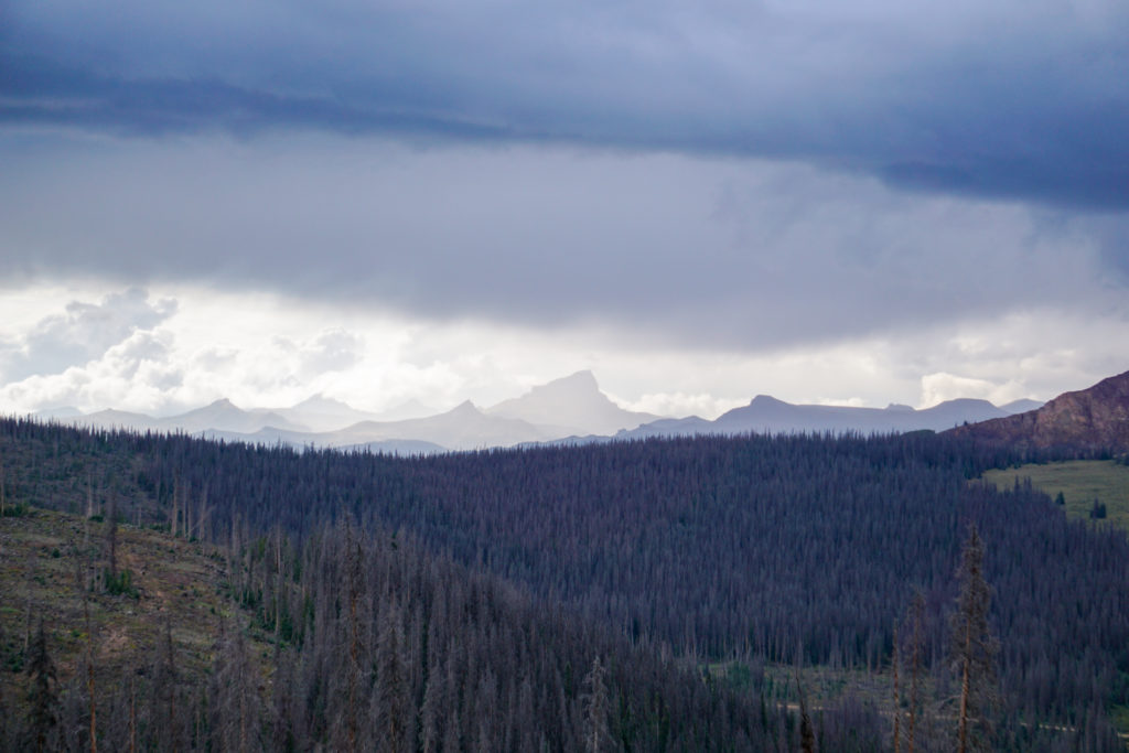 We got to the top of Los Pinos Pass and as we looked south west we were met with a huge wall of storm cloud in the valley below. It didn’t take long to decide to set up the tents again and wait it out. There was no sense in pushing through so early on and being wet for the rest of the day. Especially, when considering we were climbing up to the high point and going to be over 12k by the time we called it a day.
