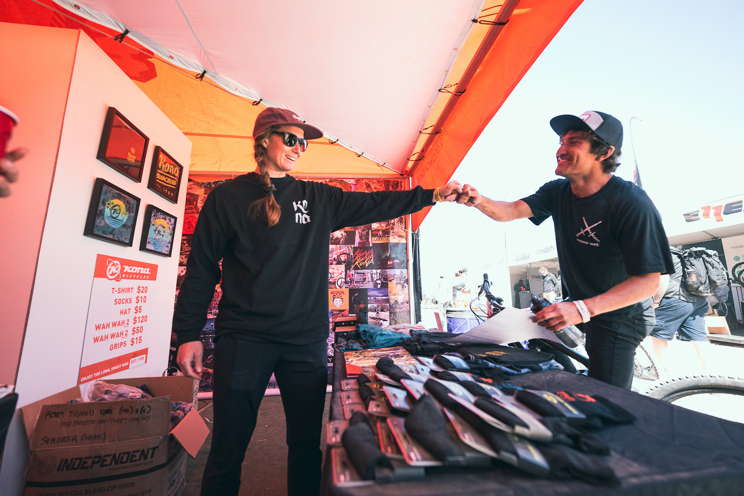 We had Kona Factory rider Miranda Miller signing autographs and making everyone smile with her always on-point humor and stories. Kona Endurance athletes Cory Wallace and Rebecca Fahringer raced in the cross-country event, putting their Hei Heis through the paces. We had ambassadors from around North America ambling through the booth too!