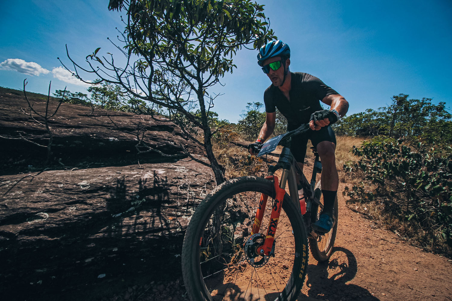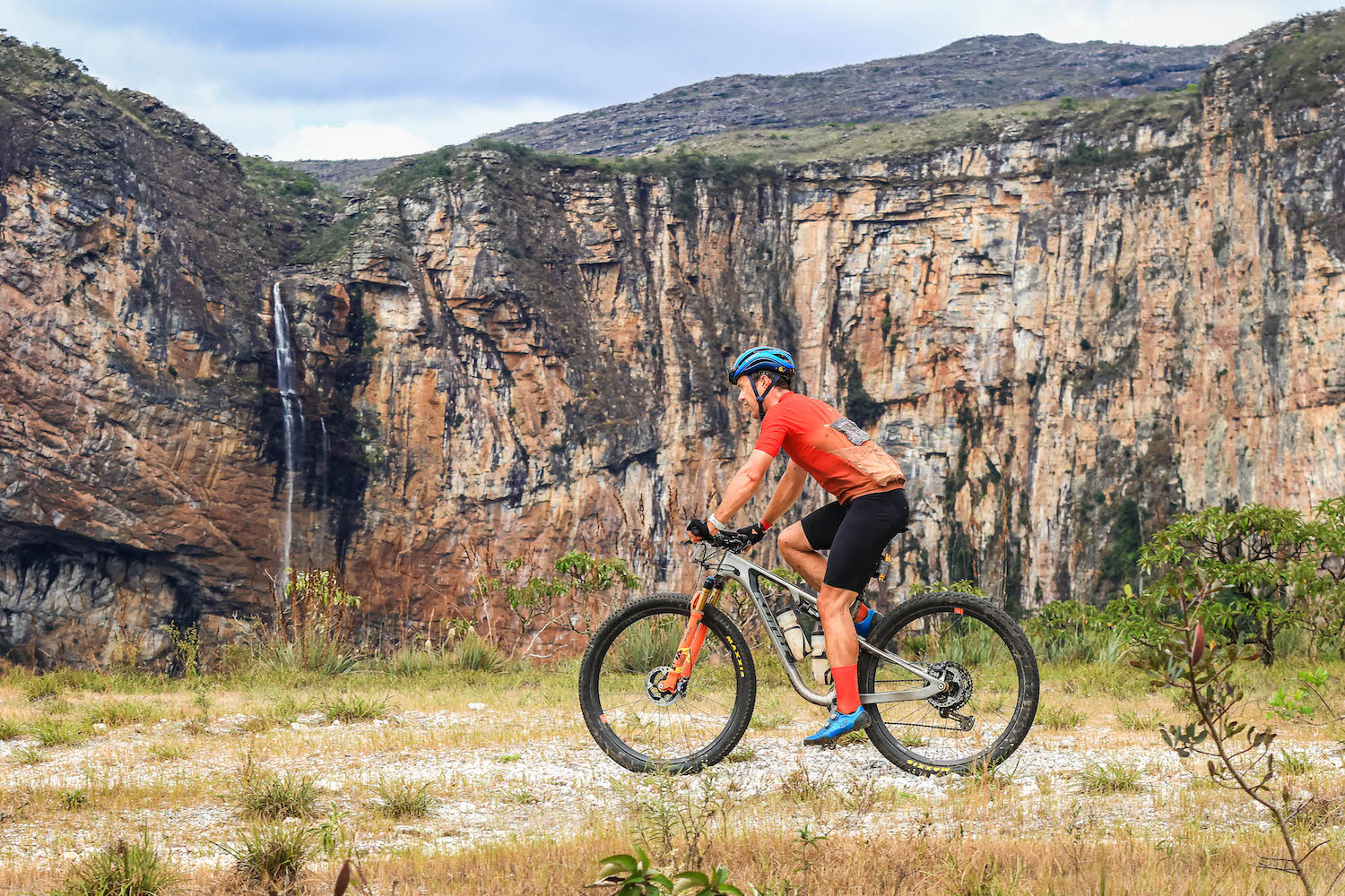 The Queen’s stage at Brasil ride was one to remember taking us into the beautiful Serra do Intendente natural park. After the full tropics meltdown on stage 2, I was concerned about even finishing the 83km, 2300 vm stage 3. Going out conservatively, dangling off the back of the lead group of 15 riders, I’d stop at the first feed zone to reload the bottles with fresh cold water while the rest rode away. From that point on the body came alive, in large part thanks to the cloudy weather and cooler temperatures as we climbed up to a plateau at 1400 meters in the Park. The riding was awesome with a big climb, a nice traverse across the top then an epic 30-minute single track descent down a proper rugged, rocky natural trail. I tried to focus on the trail without being distracted by the waterfalls and gorgeous surrounding landscapes. As the day went on I was picking riders off and soon had 5/6th in sight. After a long chase, I’d catch them on the finishing climb and attack right away as the legs were good. I couldn’t shake the one guy, he just stuck to my wheel not wanting to pull, so we had a sprint for 5th, unfortunately, the gears slipped and he got it but it was nice to have the power back after a rough one yesterday.