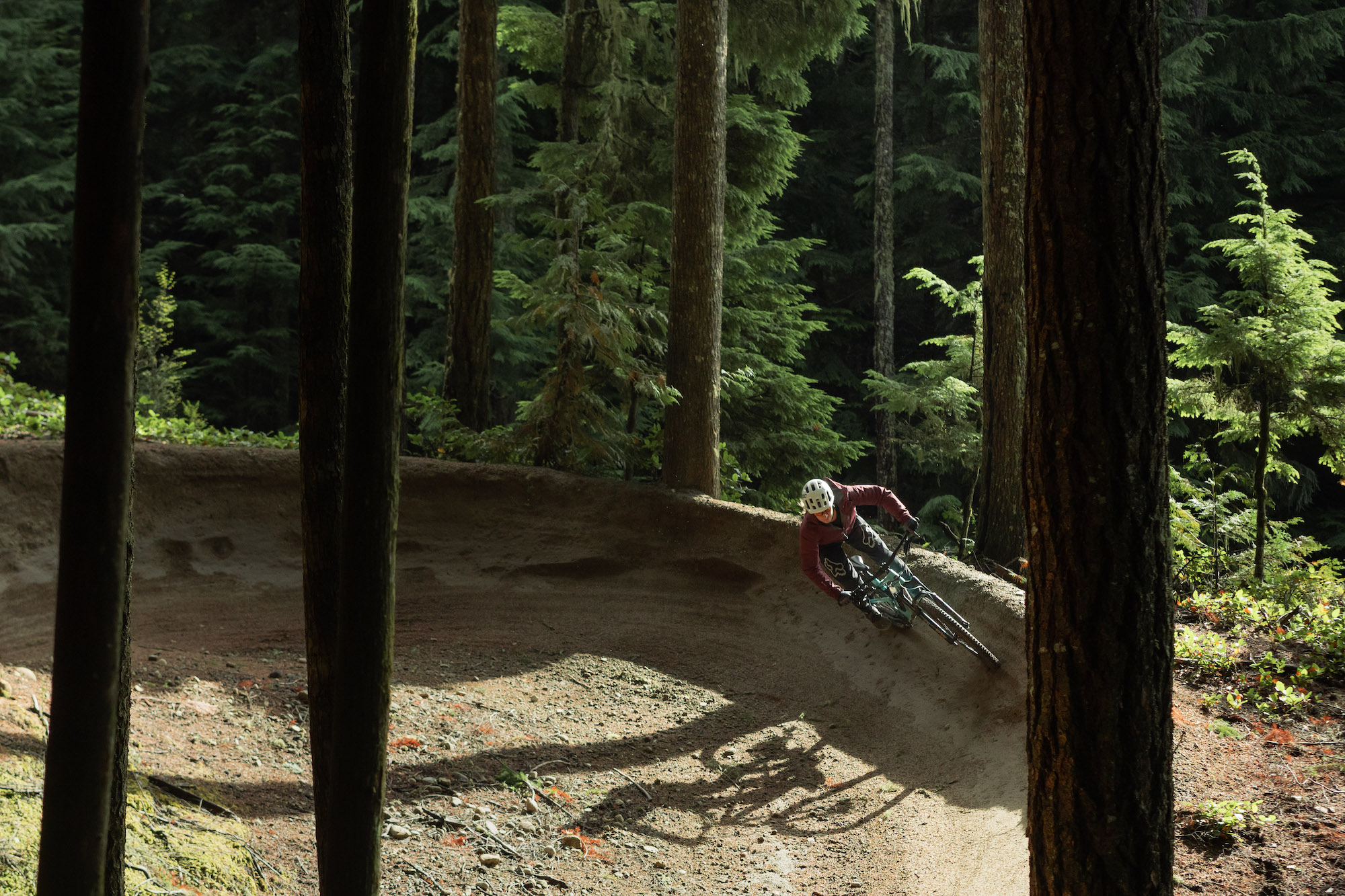 Coach Lindsay flows through a scenic berm.