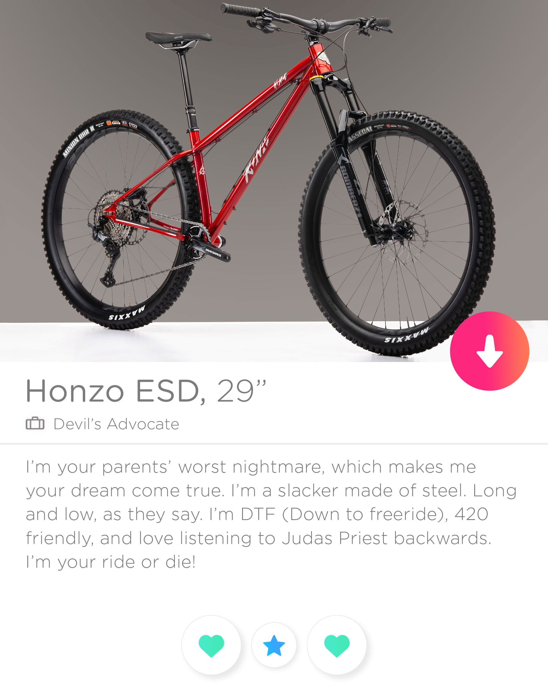Like most of you we’ve been holed up in our respective houses for way too long. Our brains are taking us to weird places, and our ideas are a bit silly. Originally we’d hoped to show you these bikes at the Sea Otter Classic back in April, but this pesky virus had other ideas. The good news is now you can dream about your future Kona from the comfort of your own home with our Teasers…. What do you say… would you swipe right?