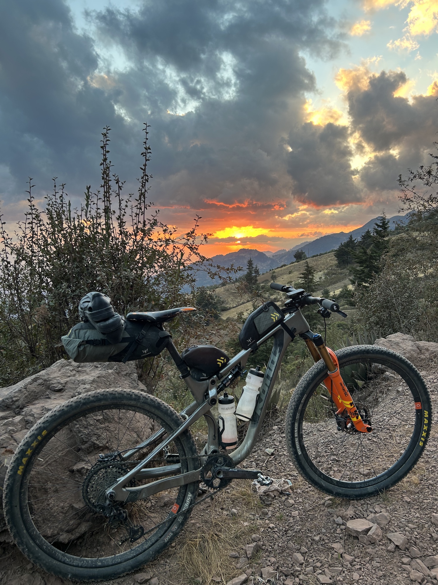 Race day for the 30 km “King of the Machines” started early at 5:15 am with a coffee with the Llama farmer before descending 4500 vertical feet, 28km to race start. Making good time I opted to detour to explore some trails before reaching the start at 7:20 to meet my buddy Giovanni. Gio had brought my race gear from Xela. I ditched the Apidura bags, checked the pressure in my Maxxis Aspen and Rekon tires, put on my 7Mesh race kit, and toed the line with 200+ other riders from across Guatemala.