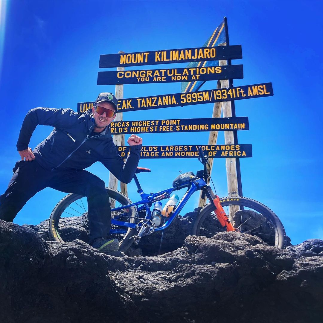 Kona Adventure team Rider Cory Wallace is never one to sit still. In fact, the Jasper, Alberta native is pretty much the definition of the word Adventure. Case in point is his FKT (Fast Known Time) climbing Tanzania’s Mt Kilimanjaro on Friday. Cory climbed from the park entrance at 1,980m to Uhuru Peak 5,898m and back in 8 hours 55 minutes. He even took the time to take in the view on top before pointing the bike downward.