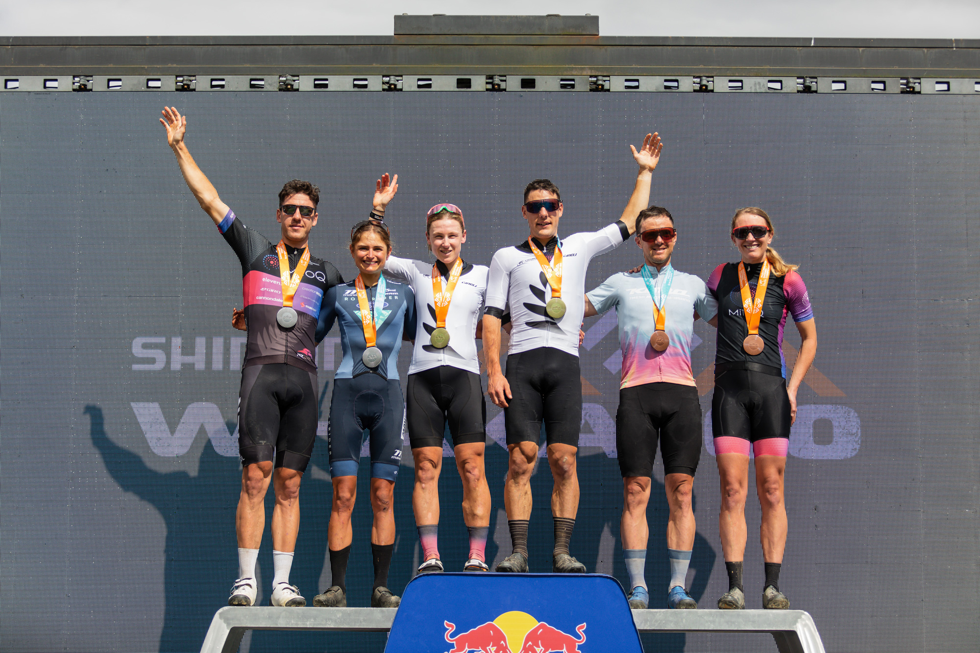 Eventually getting up to his wheel at the summit of the KOM with 20km to go, I couldn’t get around him. He took off on the epic trail descent ahead, using his local knowledge and skills to pull ahead 30+ seconds. It was another hard chase, catching him with 5 km to go, using a downhill road section to slingshot off him up the next climb. This 15-20 second gap would hold to the finish, narrowly claiming the Bronze medal, just over three minutes down from two time Whaka champ, Ben Oliver , with his brother Craig Oliver taking the New Zealand National Marathon title a few minutes ahead. What a tough but rad day of battling it out in the Whaka forest this turned out to be against a strong and deep field of riders.