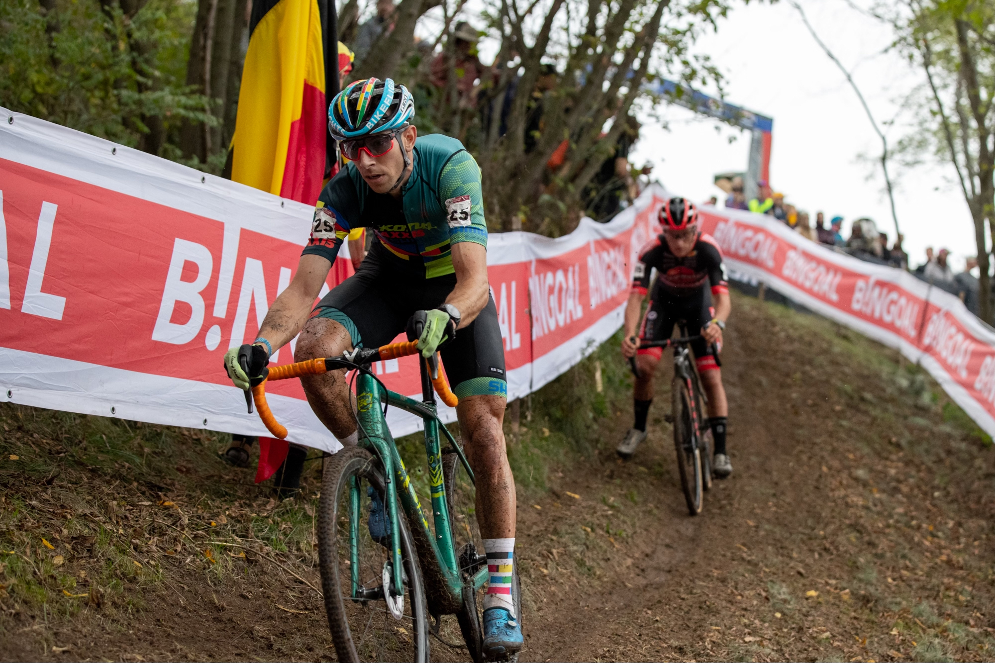 It came down to the last lap and making a move into the last feature. The Swiss national champ punched it over the barriers. I followed, was passed by Thijs Aerts, then had to pass him back before the Factory Hill off camber. I rode it clean and smooth, unable to catch the Swiss champ, but good enough to distance Thijs and rode it in for P14. My best World Cup finish to date.