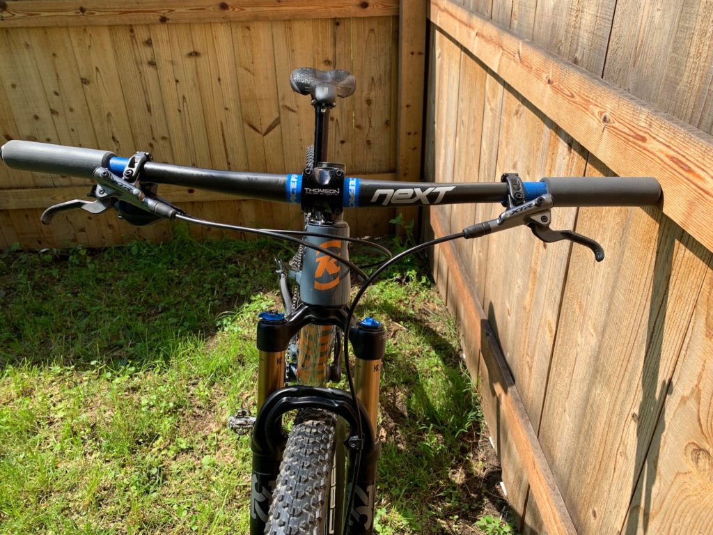 I prefer wide bars and the stock 720mm 720 mm just works great for me and love the blue details which compliment the orange of the frame and my plush Fox SC32 fork.
