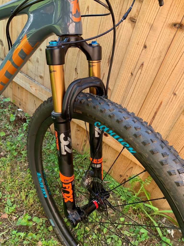I’m happy to be racing this fork which has been great in all terrain. As a bonus, the orange matches the frame and compliments the handlebars.