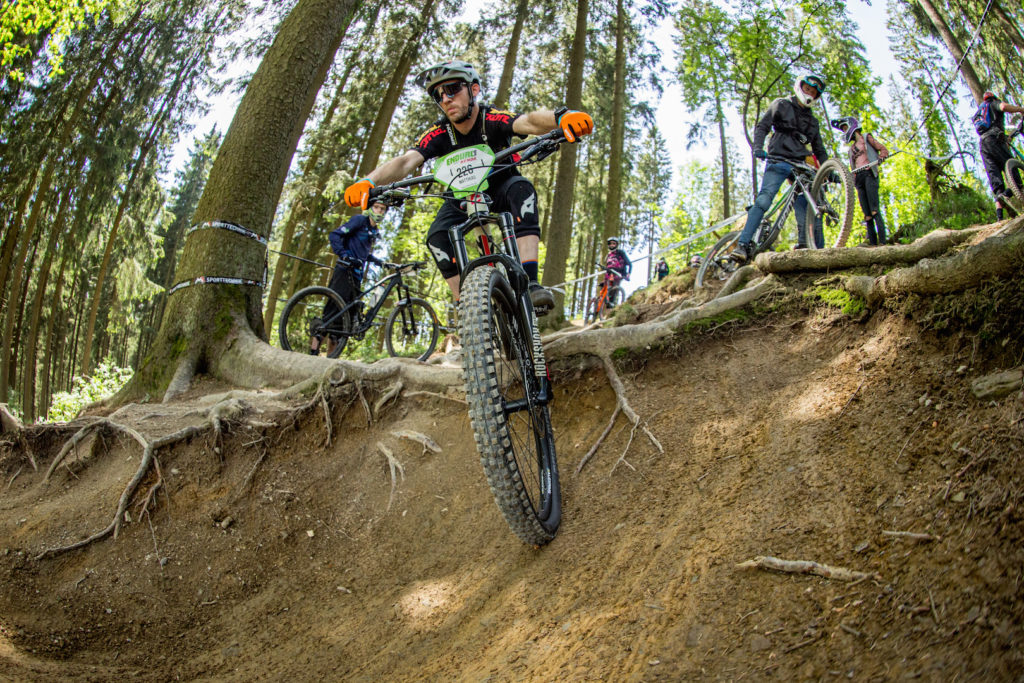 Saturday is training day with four stages to be inspected while all other stages have to be raced blind. But most of them are located in the Winterberg trail park and are also known from last year’s event…except stage one which is the blackline of the local bike park and the only really technical stage in this event. Therefore we invested here a little more time to find the fastest and smoothest line.