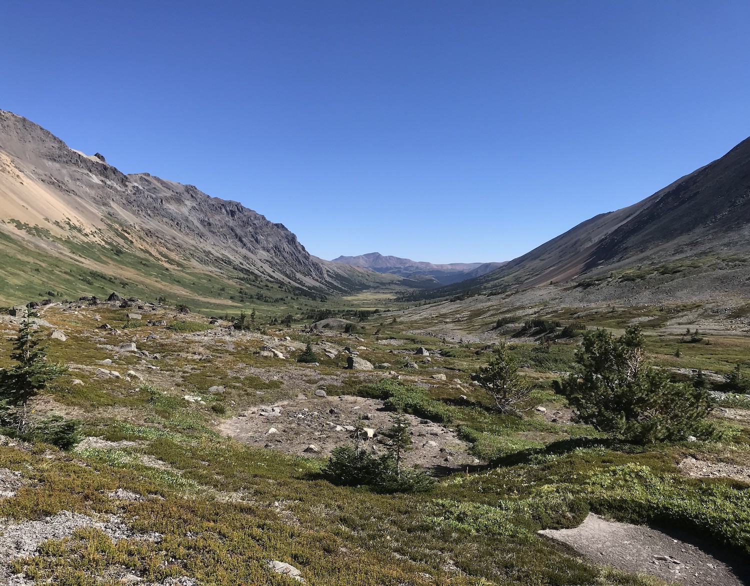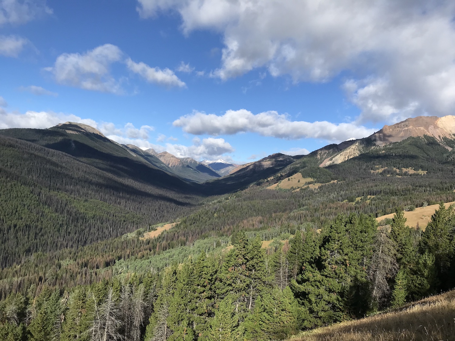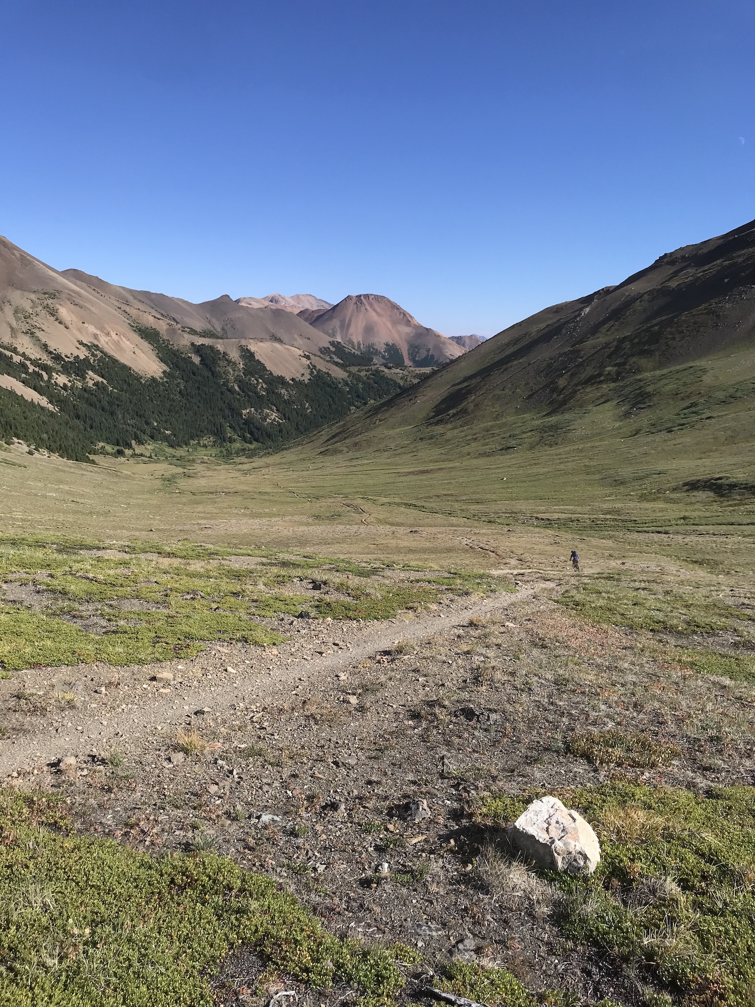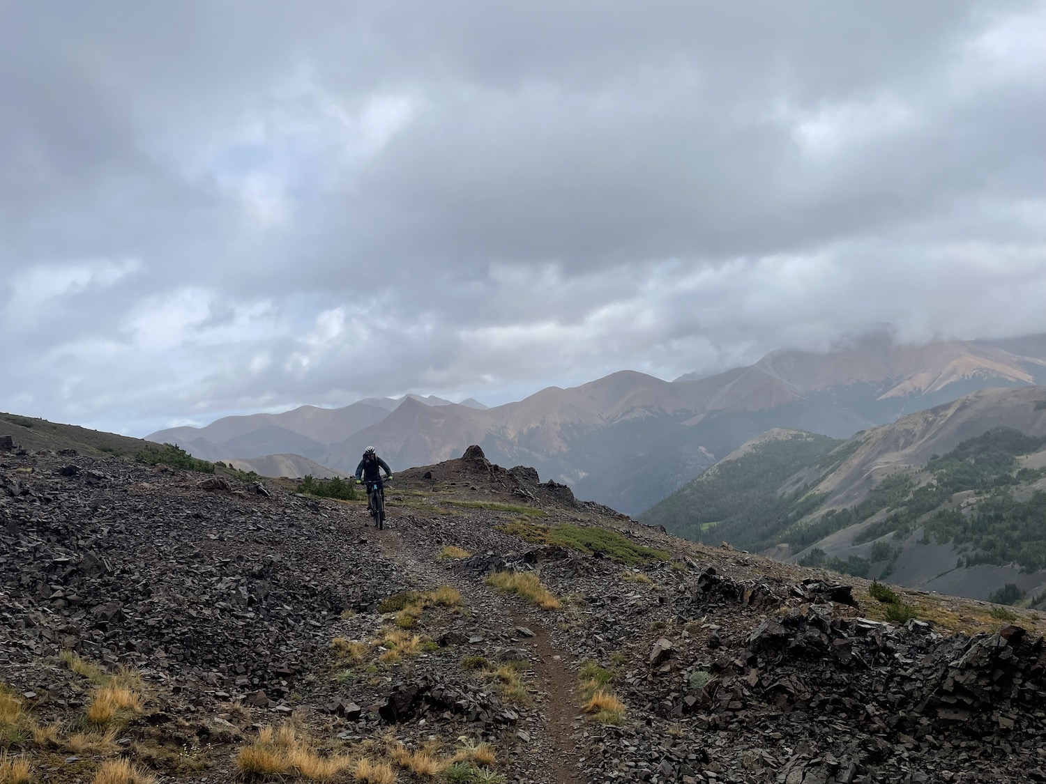 Day two would be a loop that would take us back to Bear Paw so we were able to ride with lighter packs than the first day. We headed out the Manson Creek trail and made it out to Relay Col in order to take a look at a possible long loop called Manson Castle but it was decided that this would be too much for us and we were happy with this decision when we found out later about the number of downed trees on one section of this trail. We did still have a couple of exciting things happen when our guide Nate had the heli swap a different bike for him at Relay Col since his brakes weren’t working. The heli happened to be flying in the area so was able to drop his bike while we were having lunch! Also we saw a mother grizzly bear with two cubs on the way back from Relay Col to Manson Col which was a little scary at first but she immediately turned and headed in the opposite direction and we kept a safe distance getting back to Manson Col. Once there we took the typical route that is done on day two which is to descend down the Little Paradise Valley and then up and over to the Little Graveyard Creek trail. Both of these have steep and fun descents before climbing at the bottom. My choice to bring the Process 134 paid off with these fun descents as it felt the best going down but made the climbing much easier than if I had been on a bigger bike. From the end of Little Graveyard Creek trail we ended back in Graveyard Valley and headed back up to Elbow Pass to descend back to Bear Paw camp which was a fun repeat from the day before.