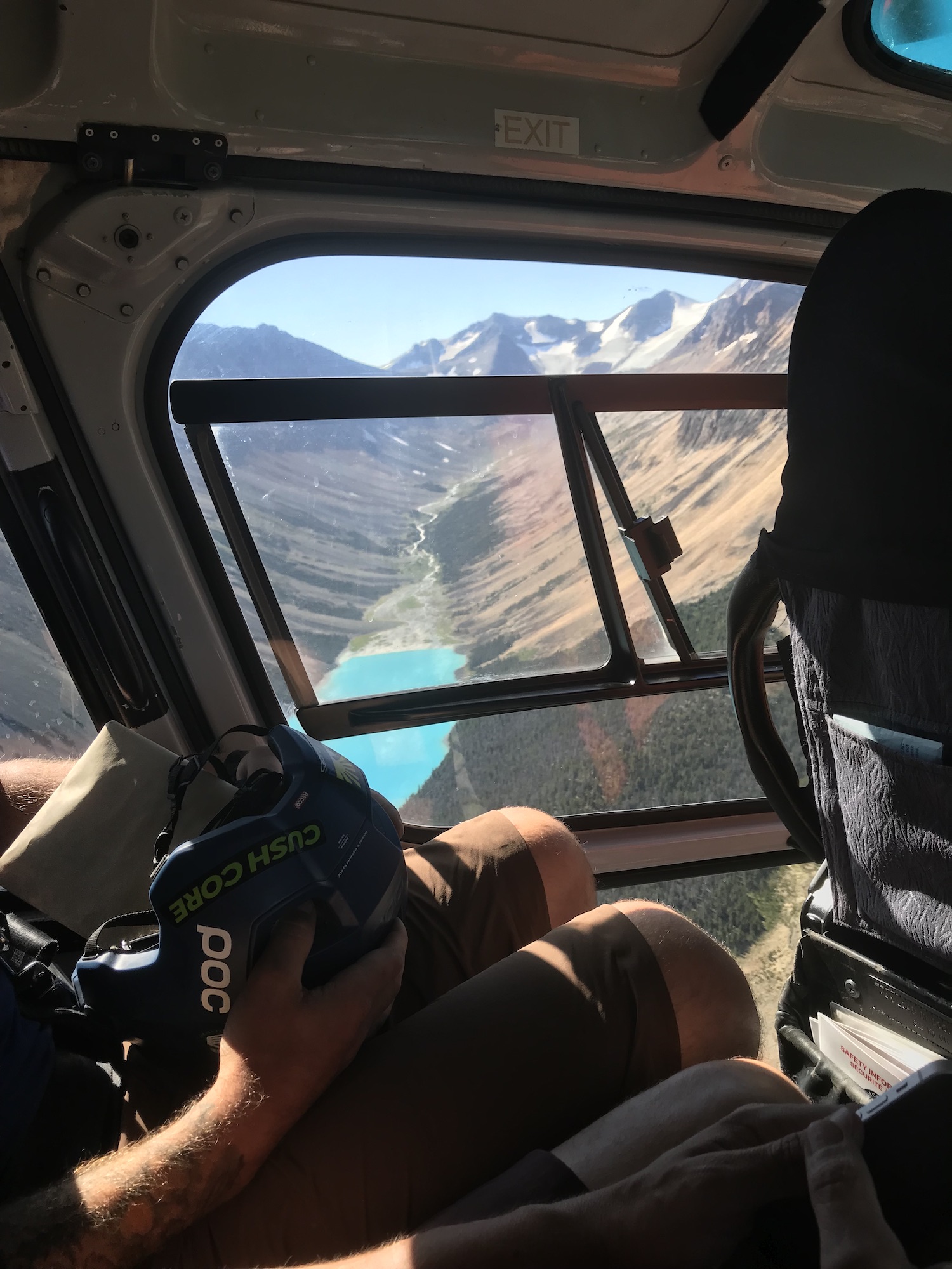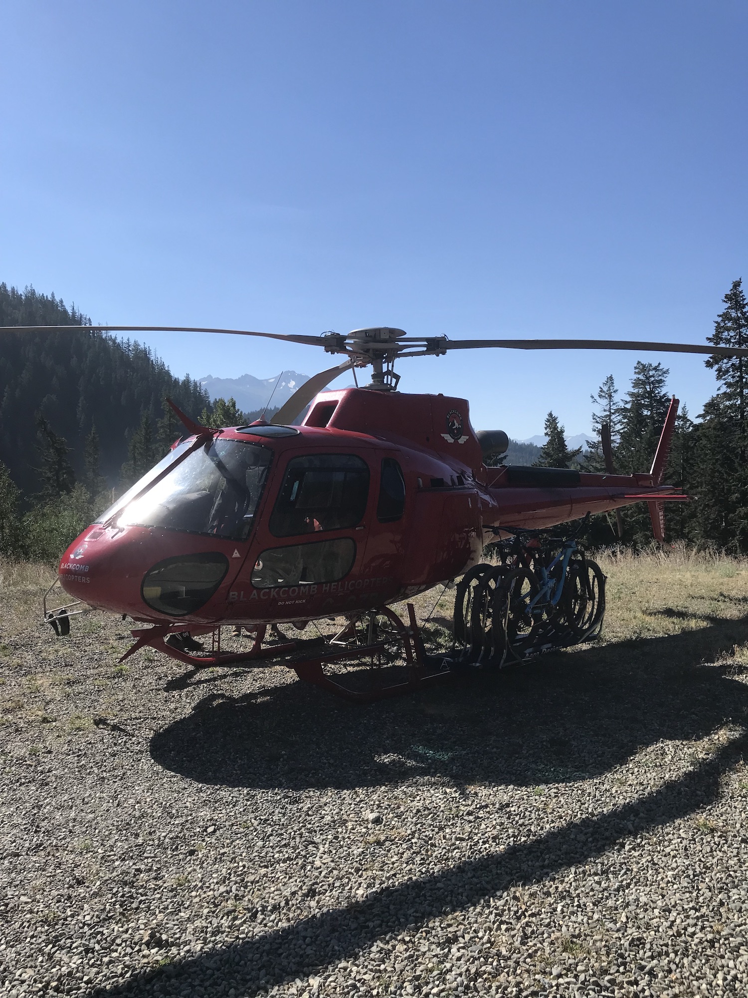 Our Chilcotins trip started the next day with an 11 am heli flight which gave us time to get bikes ready and even have a coffee at the fancy Tyax Lodge before the flight. We had beautiful weather for the flight where we were awed with amazing mountain views and a fly over Lorna Lake which has the most intense bright blue color imaginable. In 2019 we landed on this lake in a float plane, however with the heli drop this year we flew past it to land in the Big Creek Valley in order to start our ride for the day which would take us to the Bear Paw camp for the next two nights.