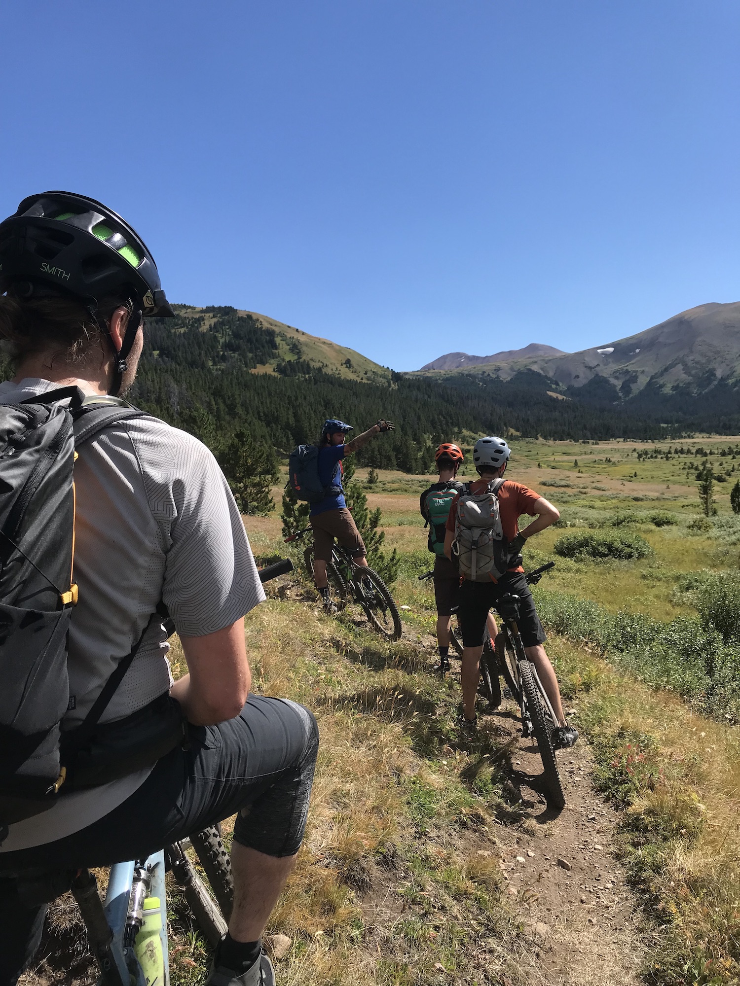 For our last day we took a fun descent down the Gun Meadows trail and were treated to the best trail conditions of the trip thanks to the rain from the day before. We made it to the end of the park boundary within a few hours and had some fun double-track trails all the way to the trailhead where we were picked up for a ride back to Tyax Lodge. Since we ended early we managed to get in one more shuttle-assisted ride for the best descent of the trip on a trail called Cinnabar which took us all the way back down to Tyaughton Lake. One more bear was spotted during this descent, this time a black bear, and Adam got to jump in the lake at the bottom making up for a missed lake swim during the downpour at Spruce Lake. Overall we lucked out with great weather and a great guide and can’t wait to get back to this area again!