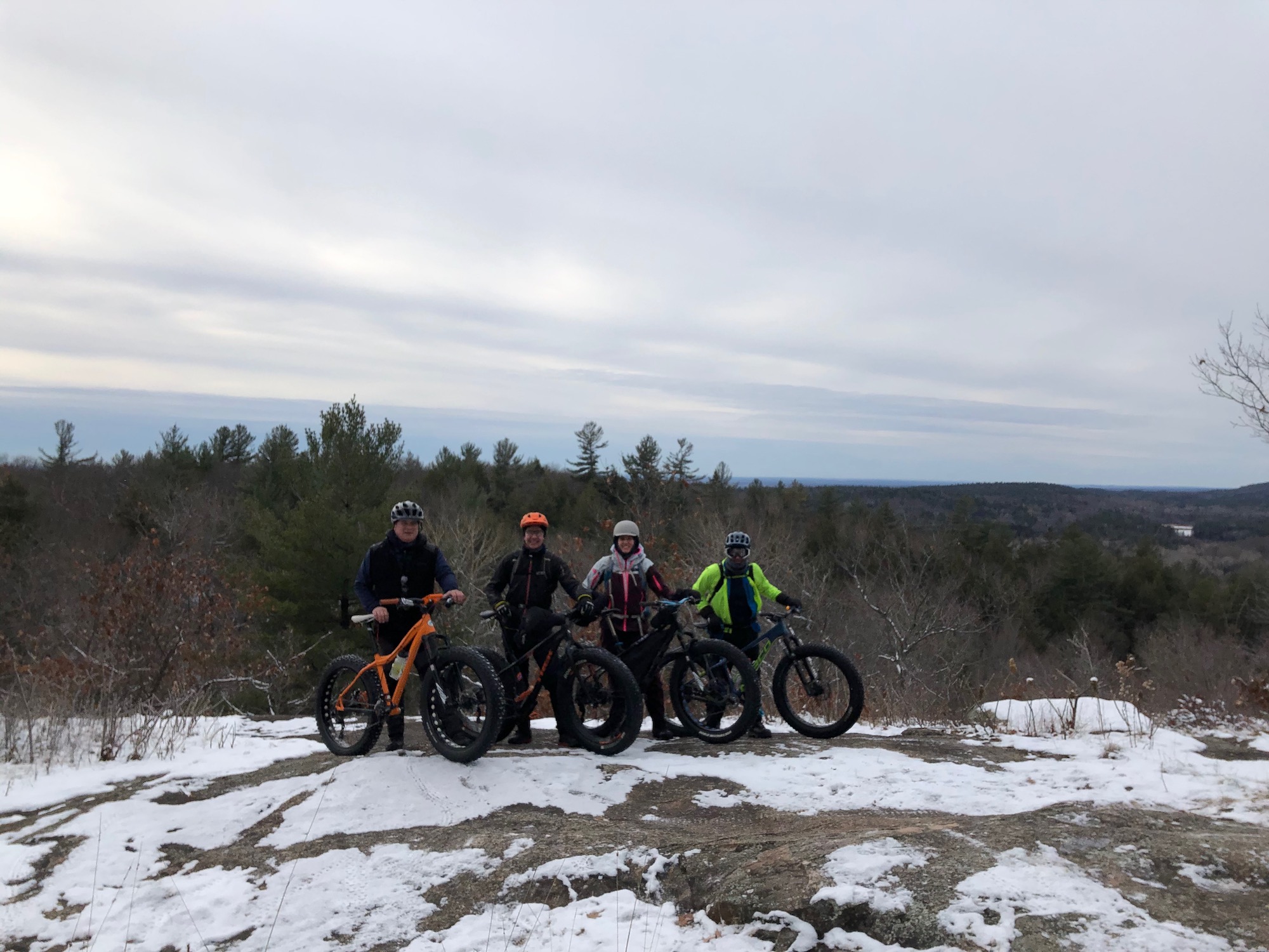 In Gatineau Park, biking season goes until November 30th so we took this rare opportunity to ride some snow covered trails that are groomed for skiing all winter and off-limits for fatbikes after December 1st. We rode up to the same lookout I did my solo bike packing trip to this summer, but chose the shortest possible route! We were surprised to see the lakes were frozen solid, which is very rare for late November. We couldn’t resist the urge and decided to bike across Taylor Lake, and it was strange to think I was camping here just 4 months earlier! Biking on a frozen lake makes you feel like a little kid again.