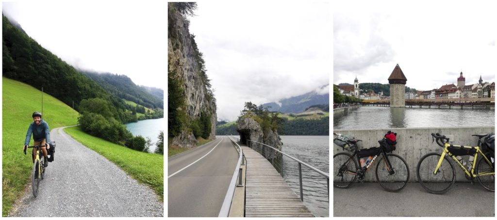 On Monday we head towards the Alps and while riding the at least 50km distance for the day, the hills become more and more prominent, especially when crossing the Gantrisch Natural Park. Finally, we rode down again towards Thun where we saw the lakes that we’d follow the next day.