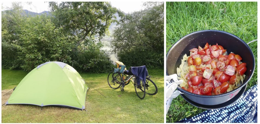 At the end of this day, we arrive by the small lake of Lungern. The camping site is perfect and from the tent, there is a beautiful view to eat our Thai soup, which changes from the “one-pot pasta” that we have cooked until now.