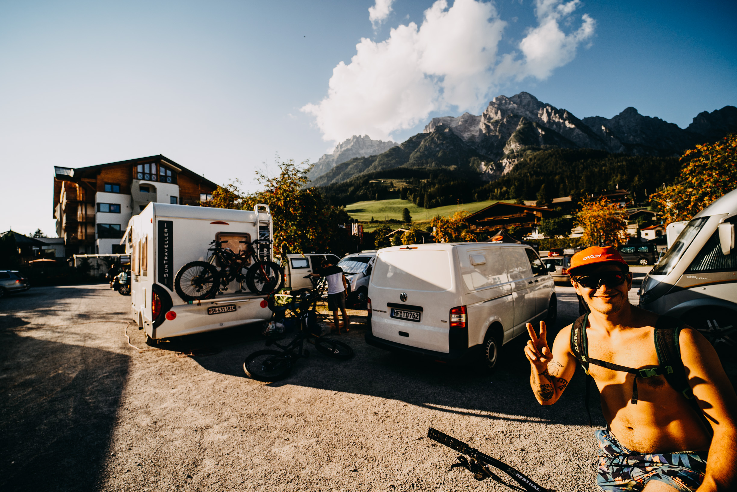 With freshly built jumplines in Austria, our idea was simple. Let’s have fun and hit classic Austrian bike parks such as the legendary Schladming, Leogang and some new ones (Petzen, Wexl and Slovaks Kalnica) on board in DIY camper van.