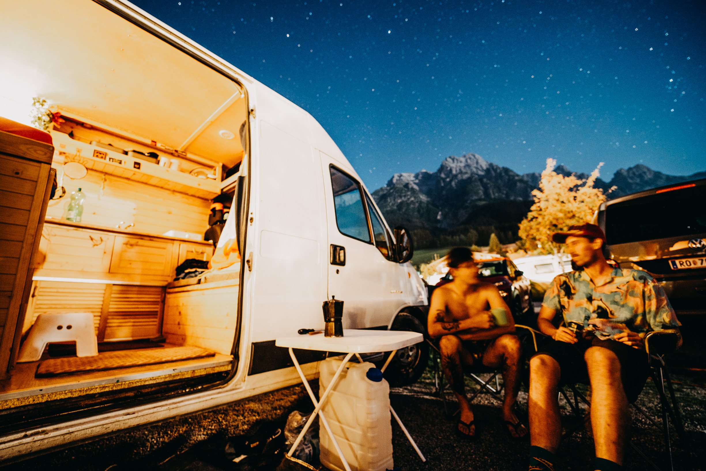Our home for the next two weeks. Good old Citron Jumper DIY converted by Hubert. Not bad view at all in the background.