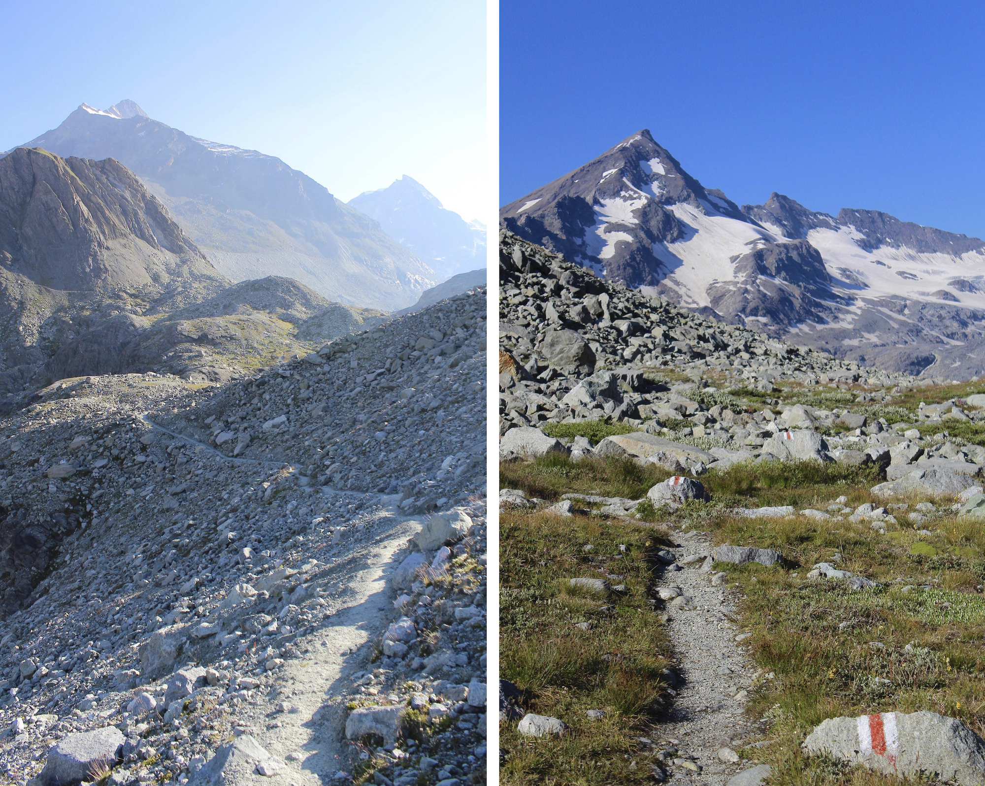 The end of the path, there is still a little over a kilometre and a half on a path that is part of the “Haute route“between Zermatt and Chamonix.