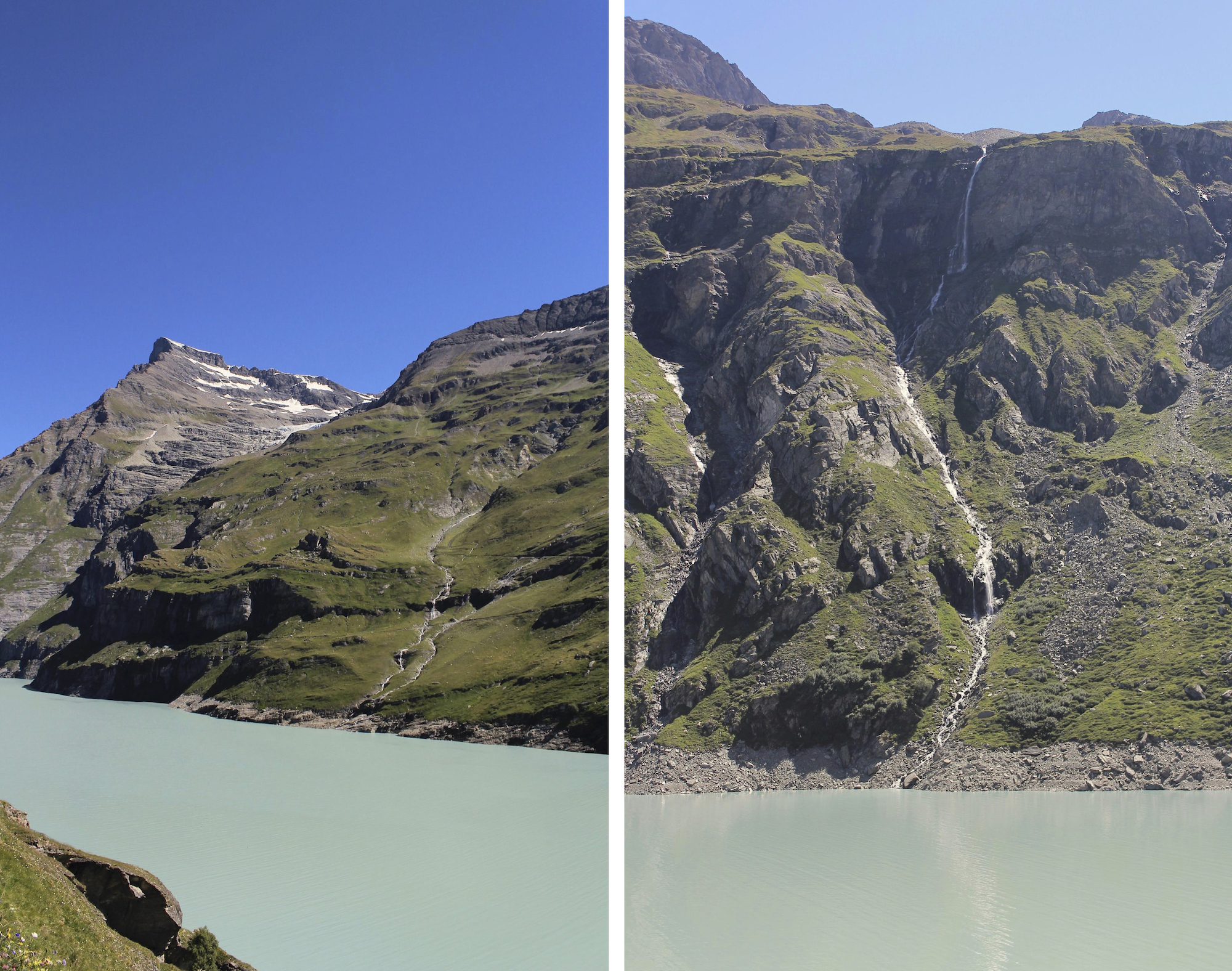 Just after a turn, I reach the top of the cliffs overlooking the Mauvoisin lake. The view is so beautiful that I could almost pitch my tent here and stay there forever.