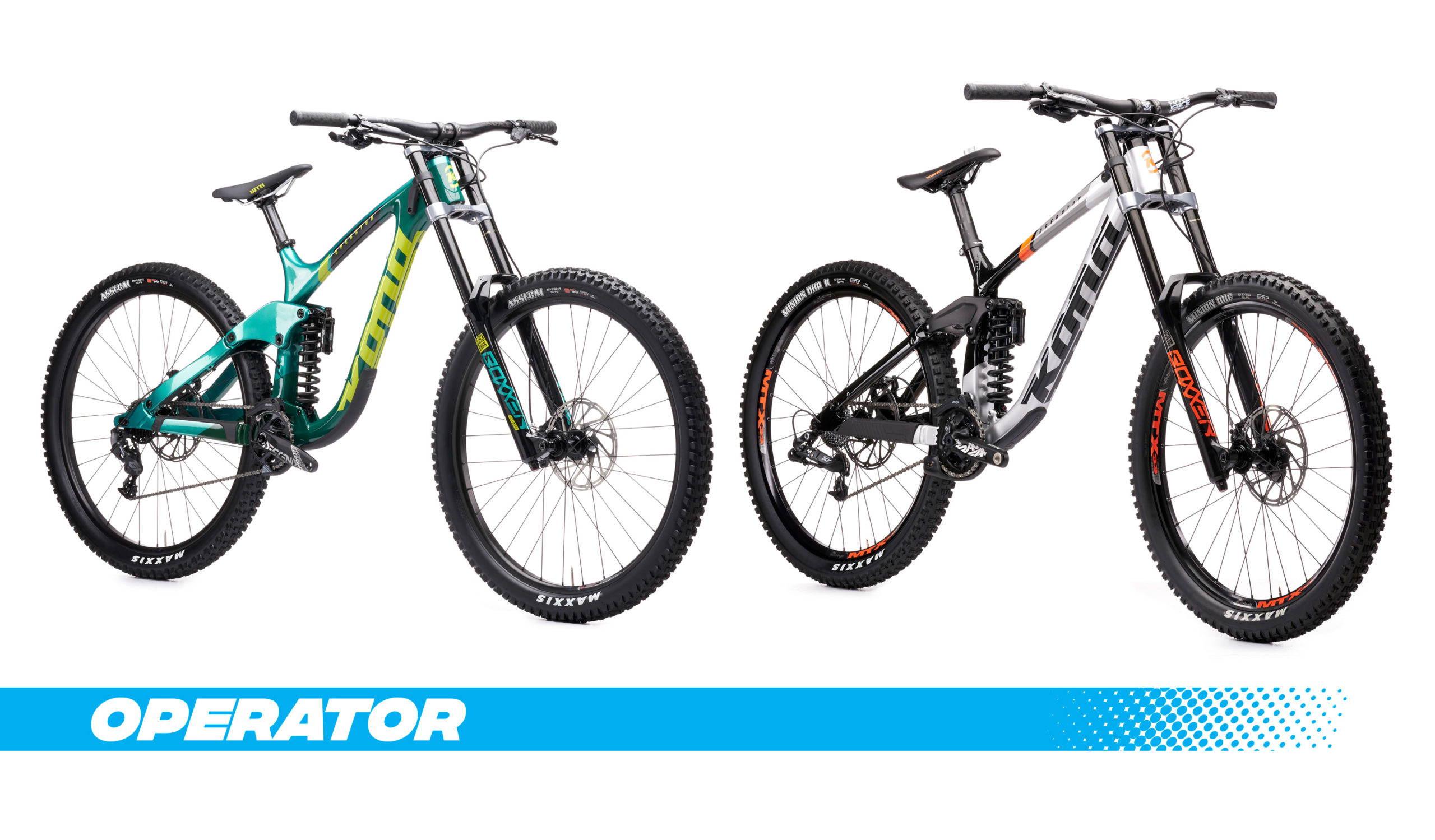 Gravity bikes are in Kona’s DNA. Throughout the decades we’ve had big, burly bikes that were made to ride fast, go big, and last through run after run of bike park abuse. The Operator is the quintessential gravity machine for your shuttle days, chairlift days, or downhill race days. Connor Fearon trusts it on the World Cup circuit, and it’s taken our team riders down some of the wildest trails around the world. Available in carbon or aluminum, the Operator is the downhill machine you’ve been looking for.