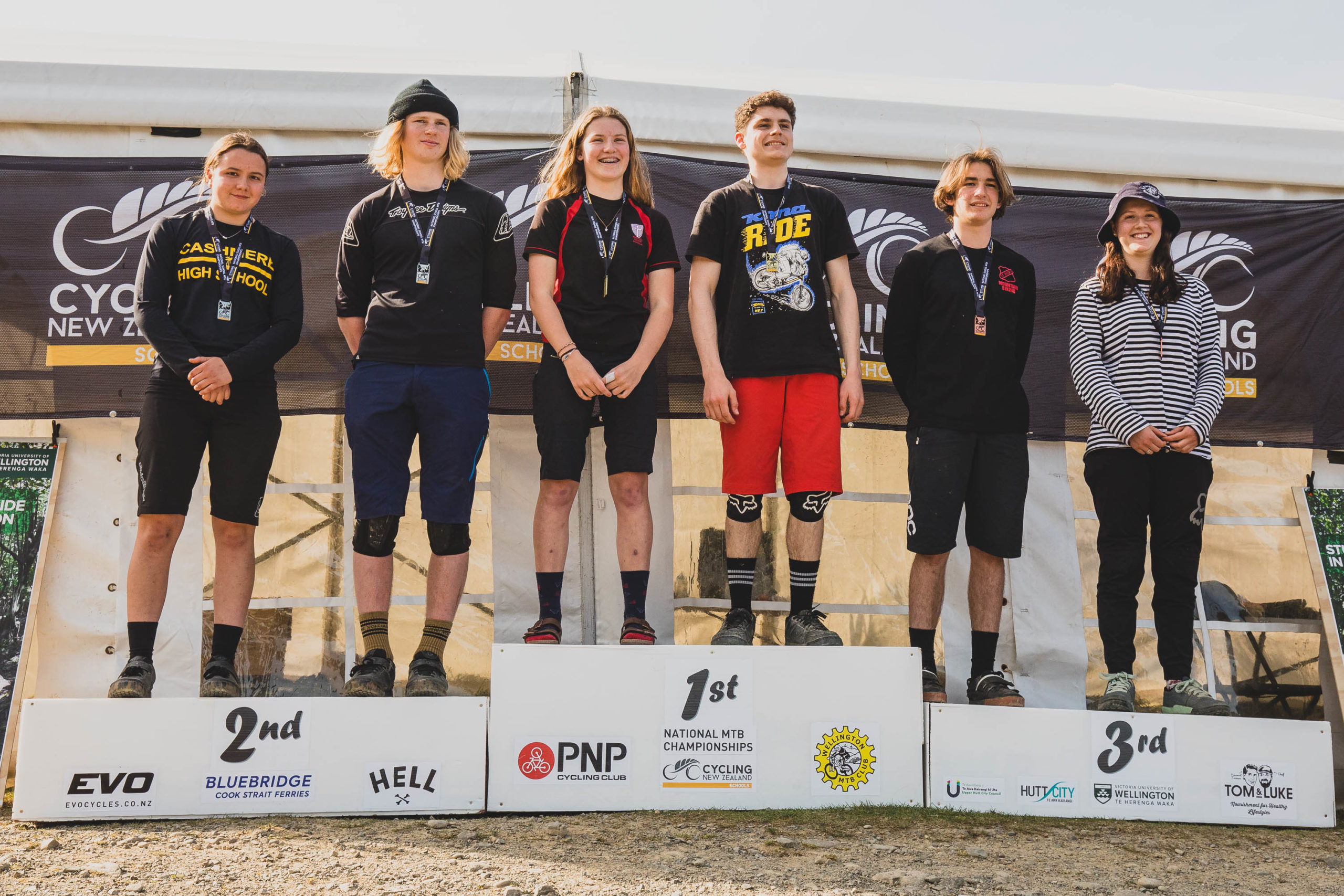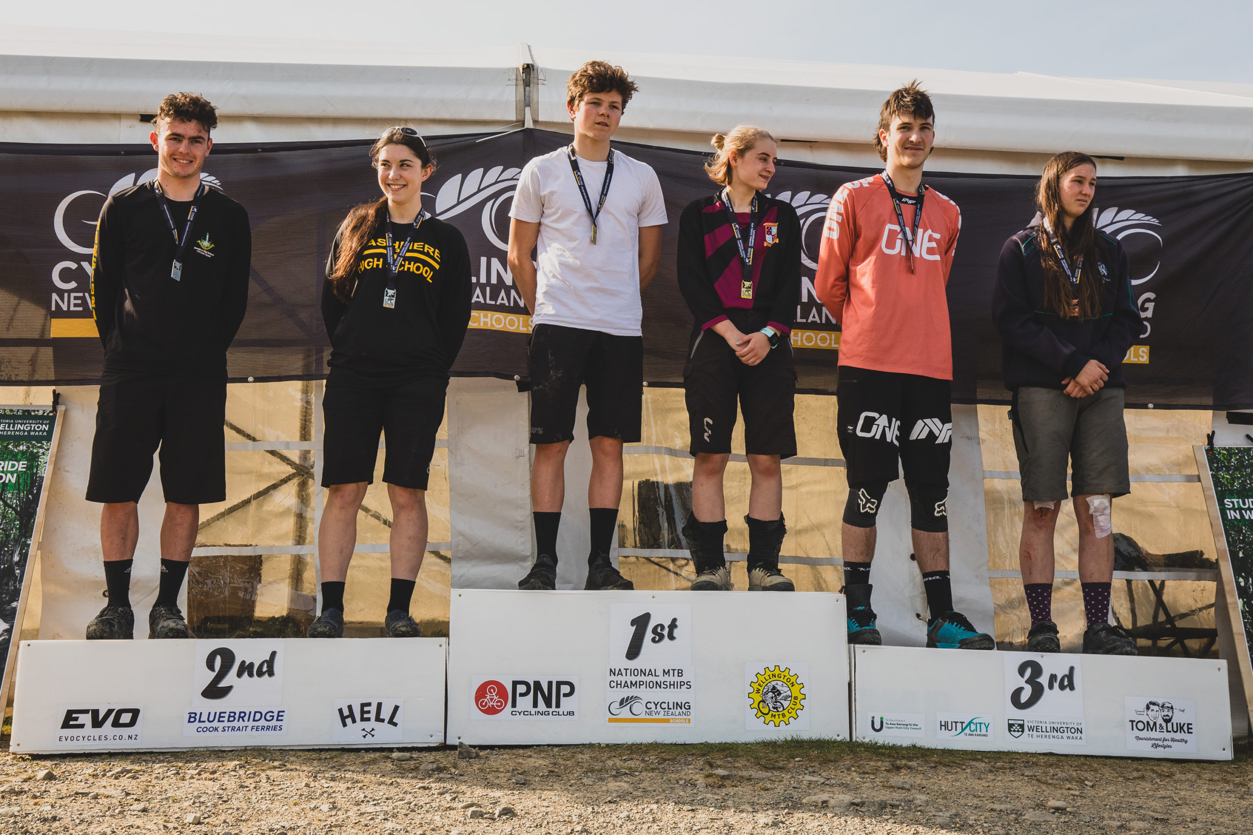 The Under 20 and Under 17 podiums at the 2020 NZ Cycling High School Champs. Elliot Smith in third in U20 and Malachai Smith in 1st in U17. The pair’s strong results, would secure Onslow College the lowest combined time and senior boys Trophy for the Enduro event!