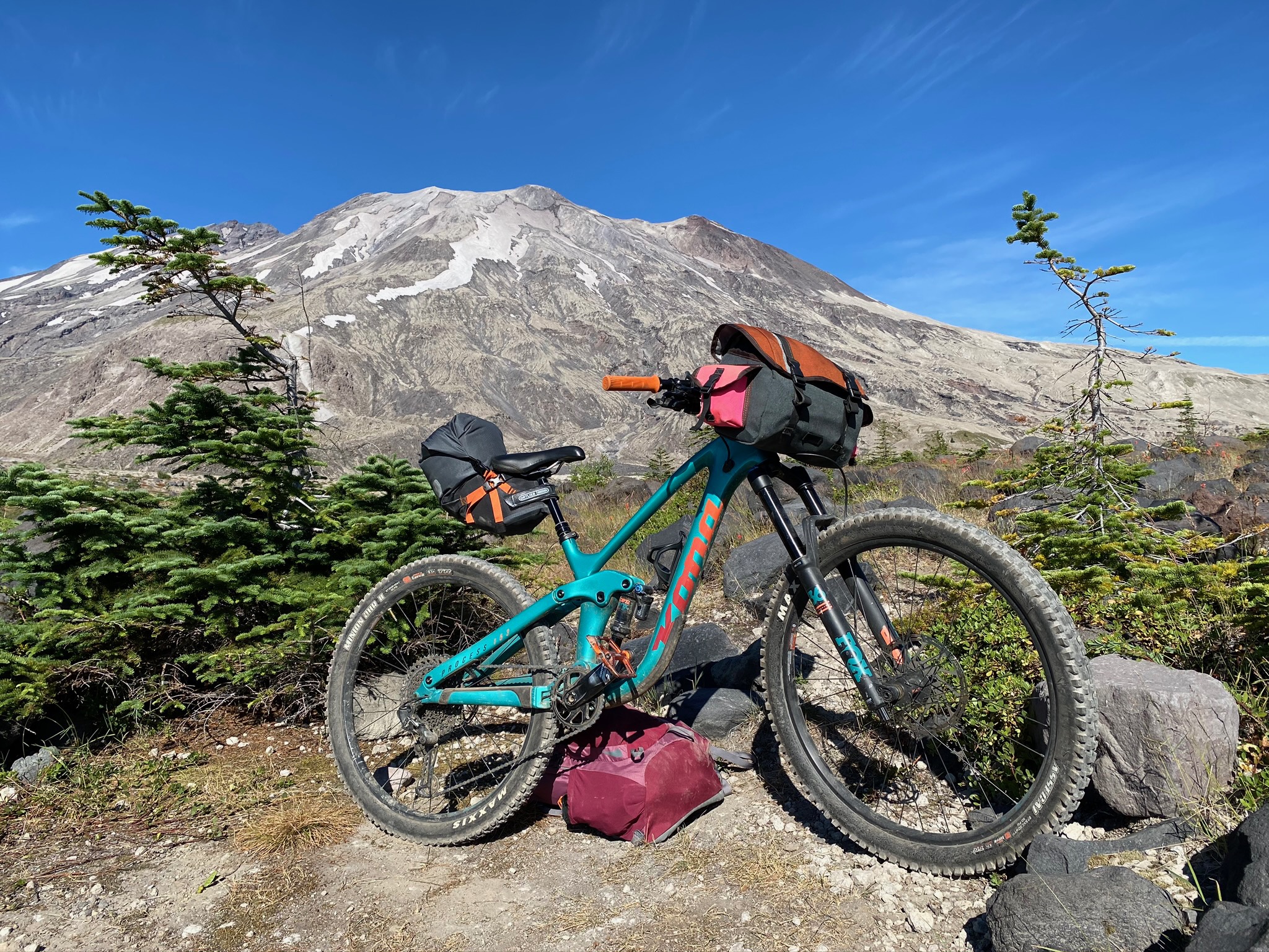 Mt. St Helens is a national monument. Bikes are allowed on the trails, unlike neighboring Mt. Rainer and Mt. Adams. To celebrate one of my best friend’s birthdays we set out on a bikepacking adventure. I was pretty stoked since I had never ridden my bike near an active volcano before.