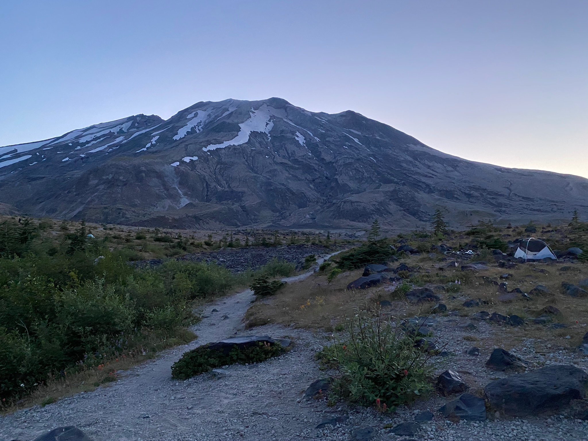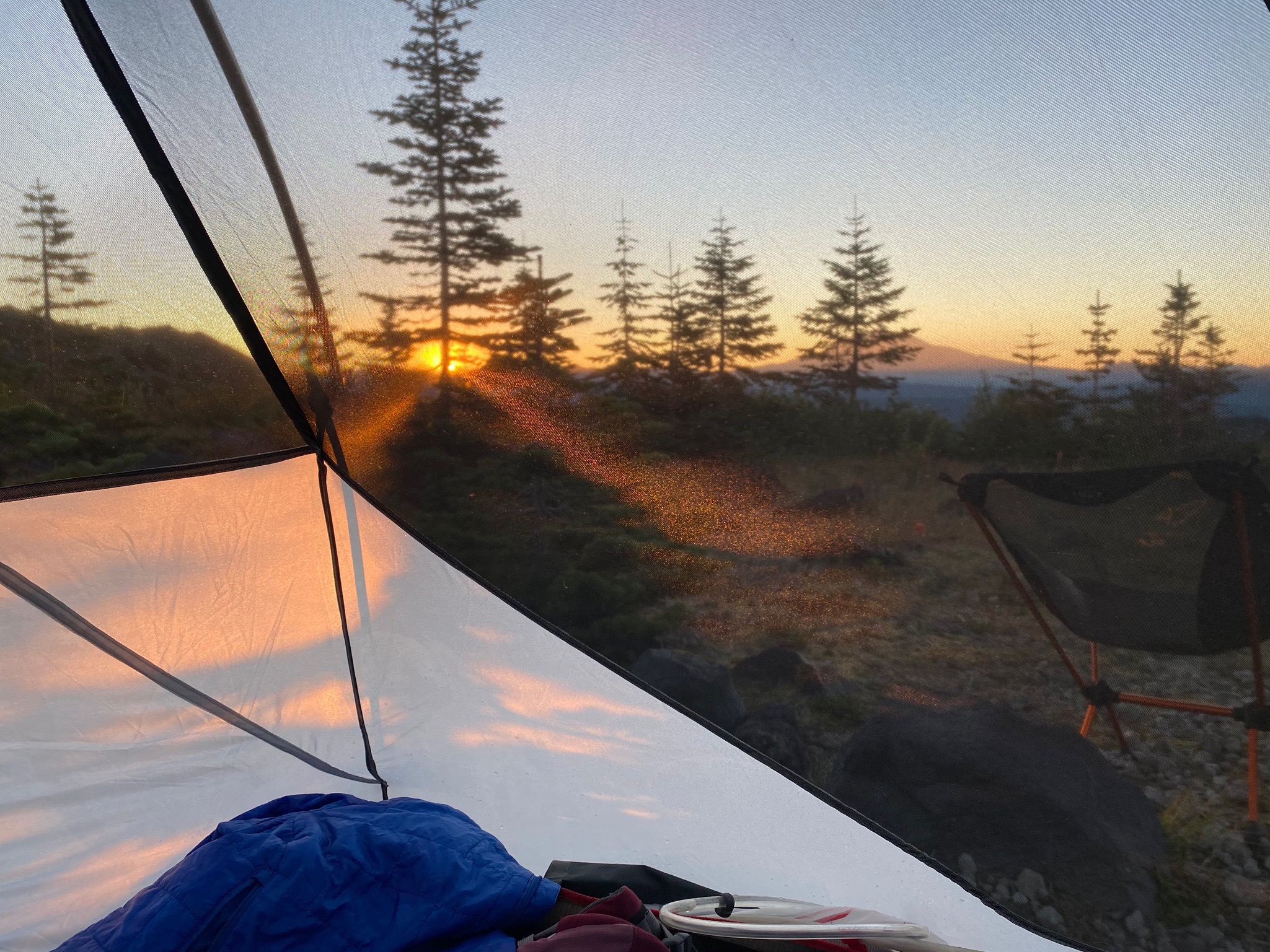 I woke up as the sun was rising and was treated to the most amazing sunrise I’ve ever witnessed. The sun came up off the side of Mt. Adams. I watched the first light hit Mt. St Helens behind me. It’s something not everyone gets to see. I woke up to witness it by myself, as my friends were still fast asleep. I felt peace in my soul during that golden hour and was able to reflect on how lucky I was to have friends with fantastic ideas, and a bike to take me to places I might have otherwise missed.