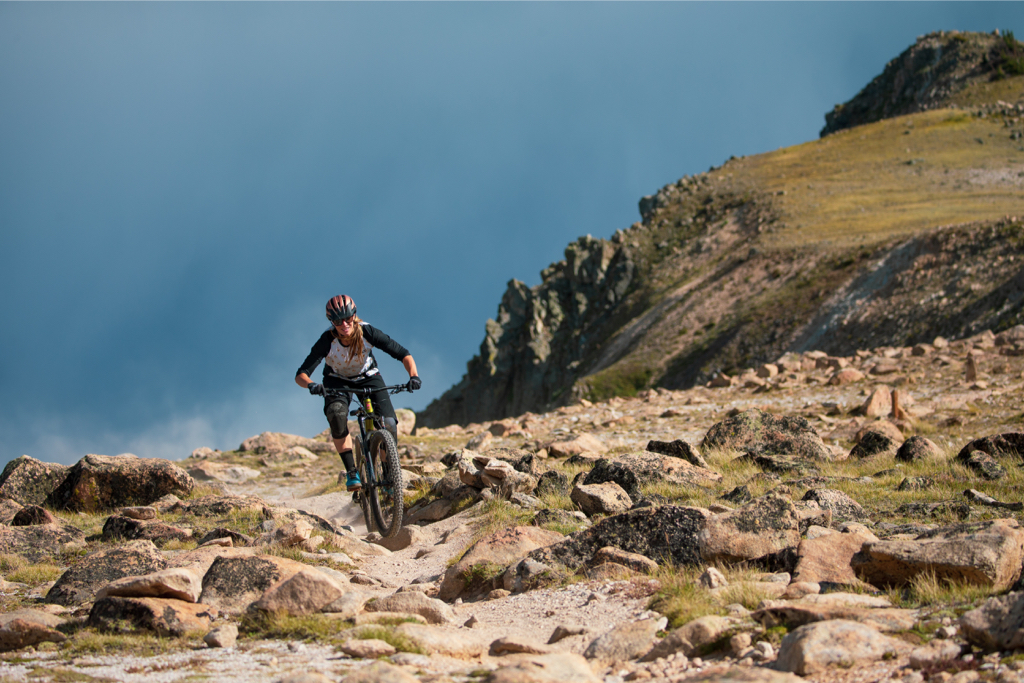 Becky Gardner has been a part of the Kona family for 10 years. From racing downhill to crushing enduros, she’s been a mainstay on the western racing scene for a long, long time. It seems fitting that for her 10 years on a Kona she’d choose the golden Process 153 DL 29 as her steed. Becky took her dog Twocaps on an alpine adventure during golden hour for a gorgeous sunset shred aboard her brand new bike.
