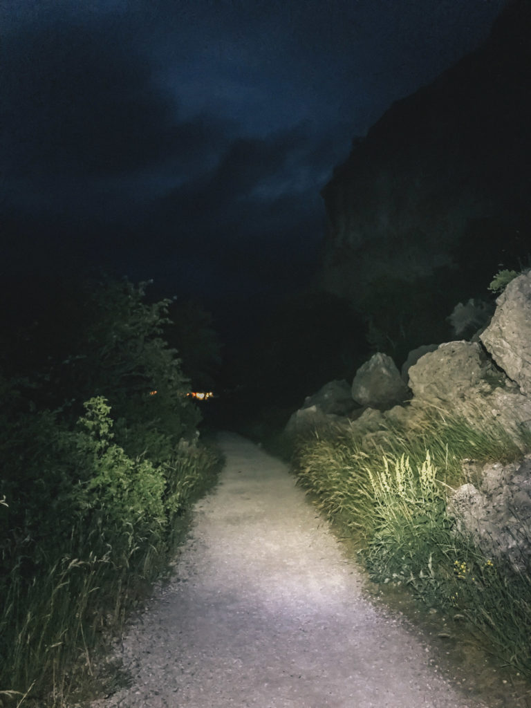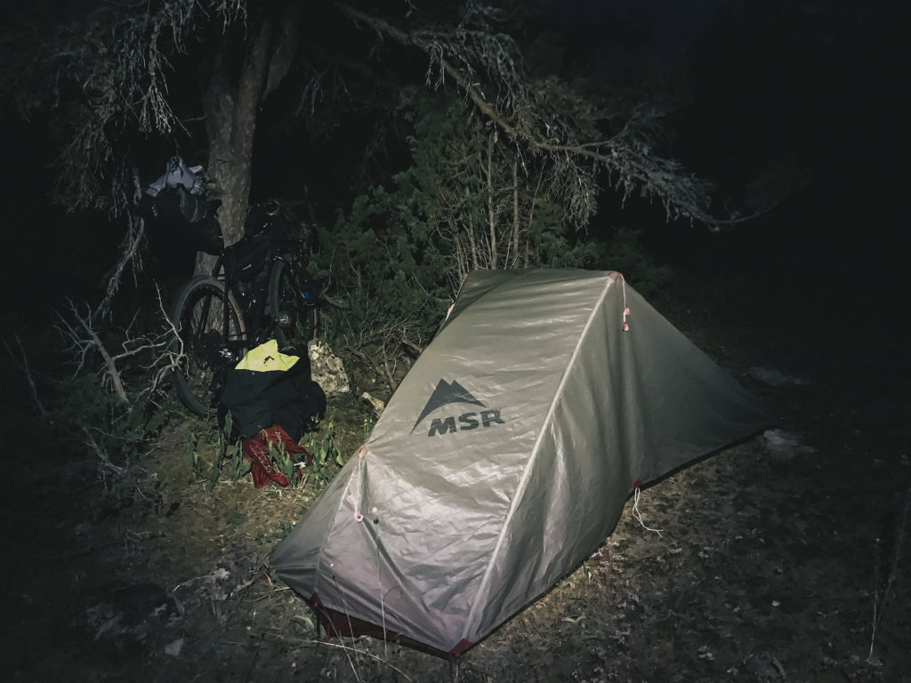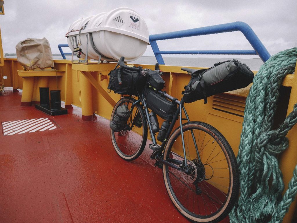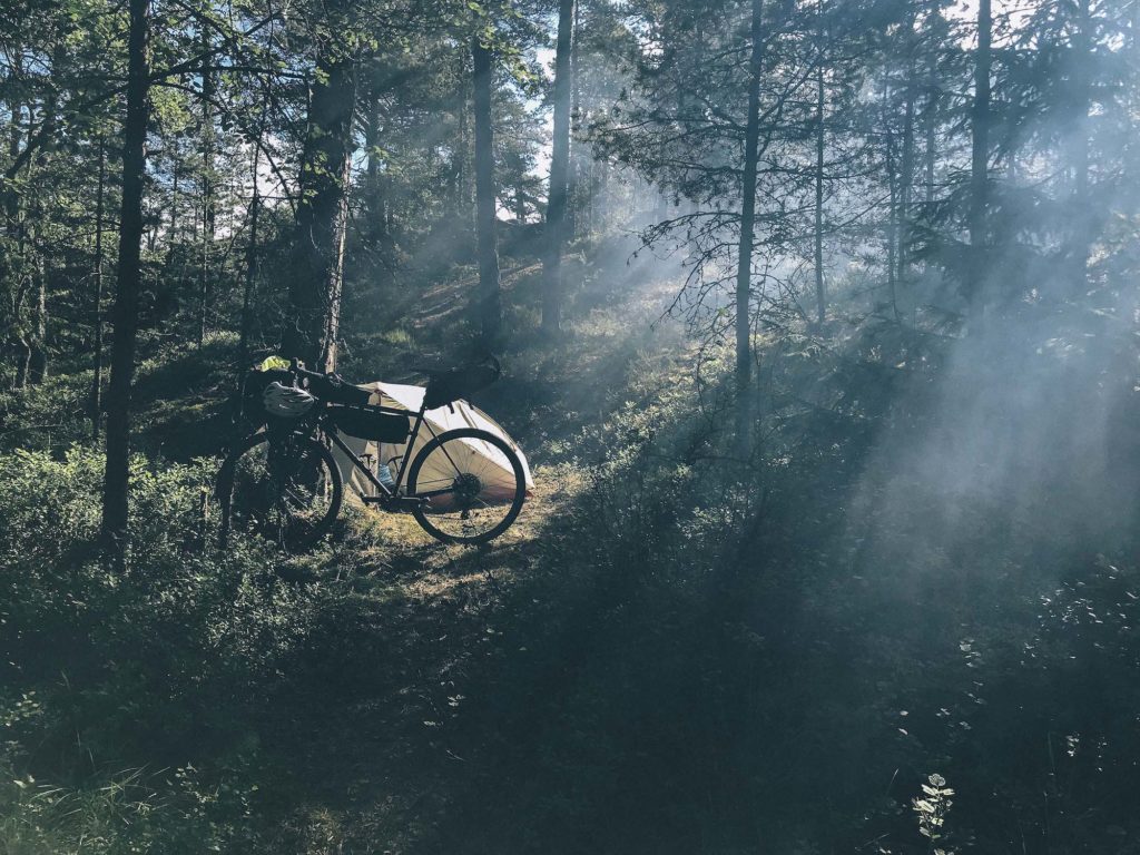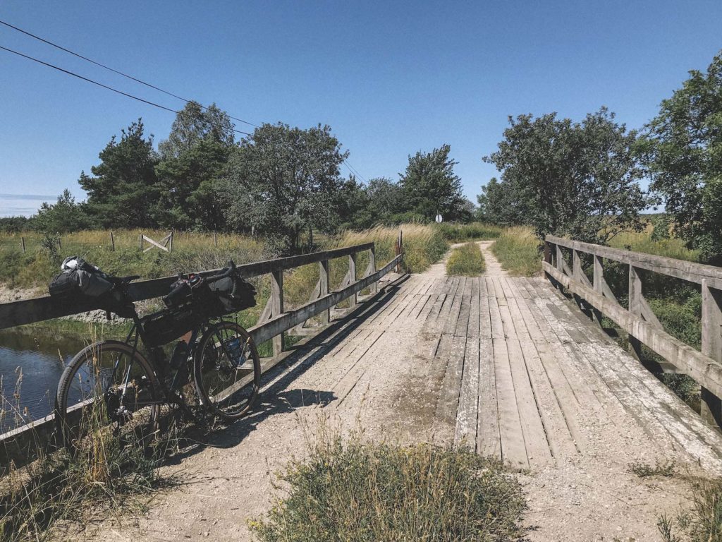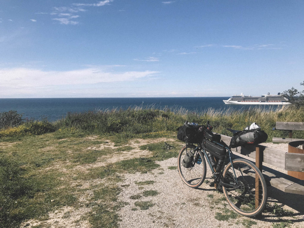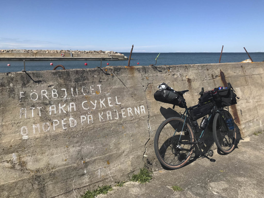 The ferry arrived on time at midnight. Since I was headed north from Visby, the south-west breeze had magically turned into a tailwind. I had anticipated that it would be rather light in the middle of the night in the beginning of July, but with full cloud coverage and zero moon it was really dark. It got a bit risky going fast on the narrow paths that the Gotlandsleden follows but once the route takes to the main road it was a joy. There was virtually no traffic at all so it was pretty safe to ride. On the open areas, the wind was giving a nice push. You can’t really see any surroundings when you focus on your front light that is a small spot on the pavement. At some point, I realised I had run out of gears and felt going pretty fast. Checked my GPS and realised I was going 40,6 km/h on the flat with knobby tires on a fully loaded Kona Sutra LTD! It started to rain again so after 40 km in the dark I set up camp in a random bush 50 m from the road. 20 hours from waking up, riding 125 km, waiting for the ferry and crossing a sea was a good recipe for some sleep.