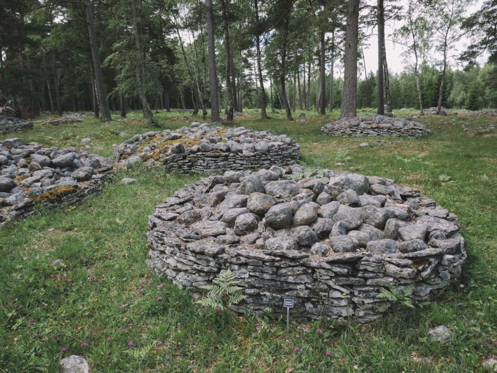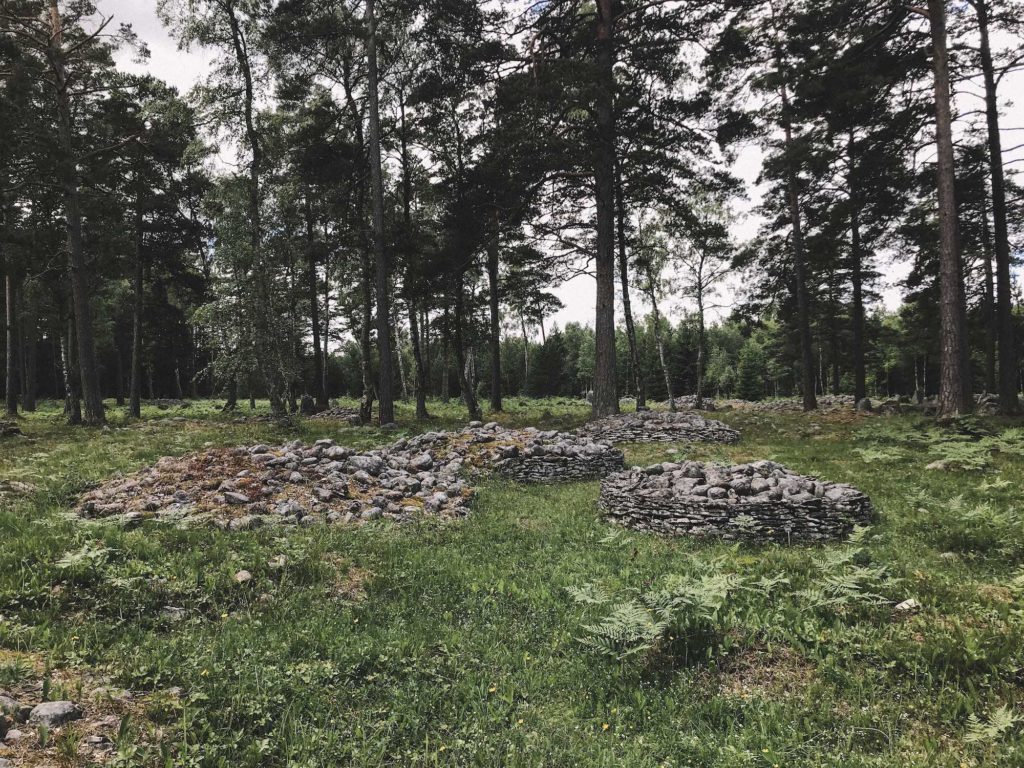 Made pasta for breakfast to get some extra energy to battle the wind again. Luckily after about 12 km, the route turned to the forest and finally the gravel roads started. The trees gave good protection from the wind and it was really nice to ride along the forest roads. This area is known for its iron and bronze age graves. There are over 350 of these rock formations in the forest. A few of them have been restored to give you a better understanding of how they once looked.