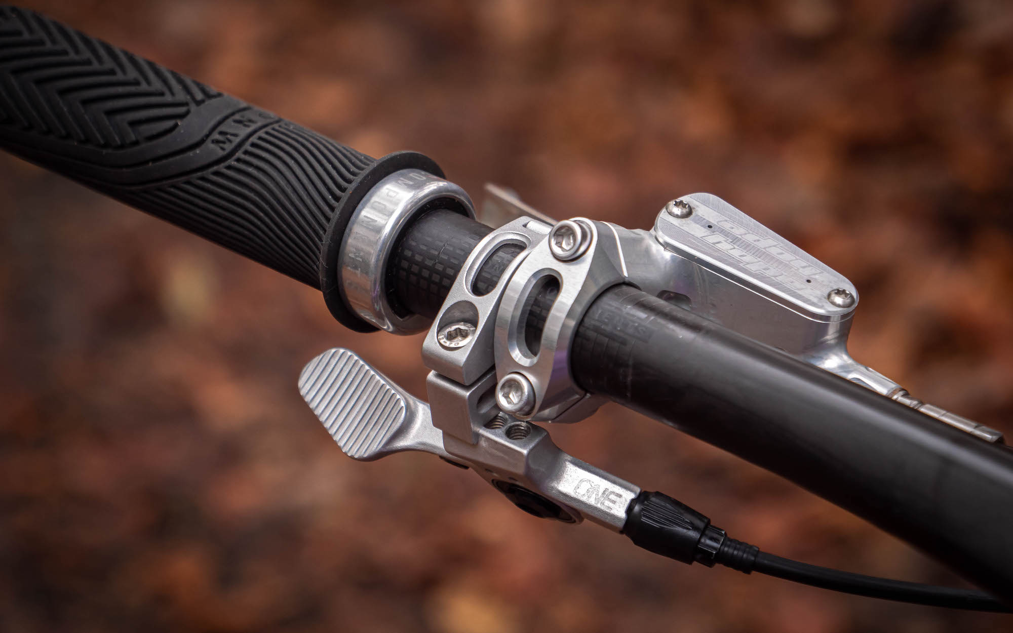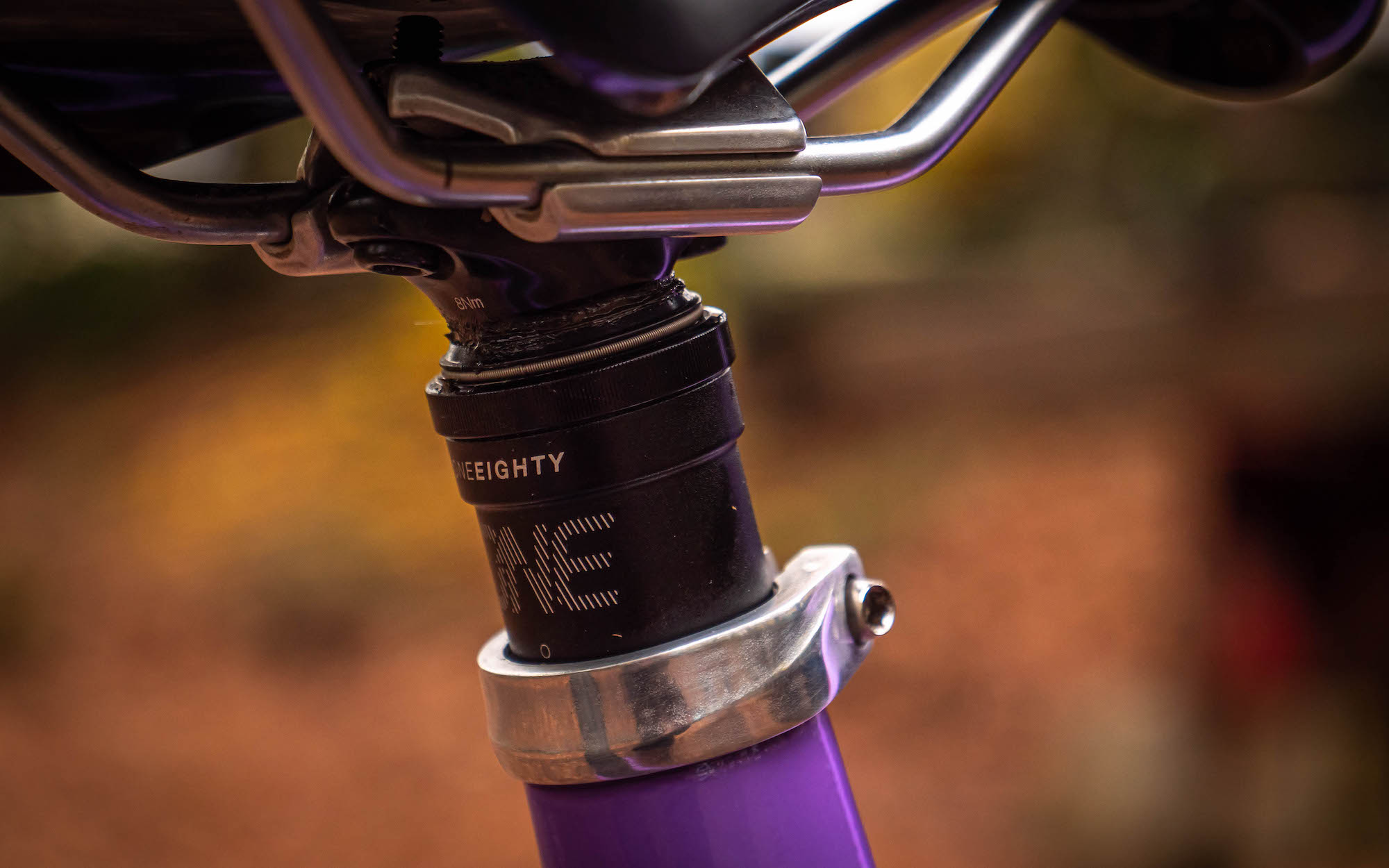 The 180mm dropper is held in place by a hand-polished Kona seat clamp. Gotta love those little extra details!