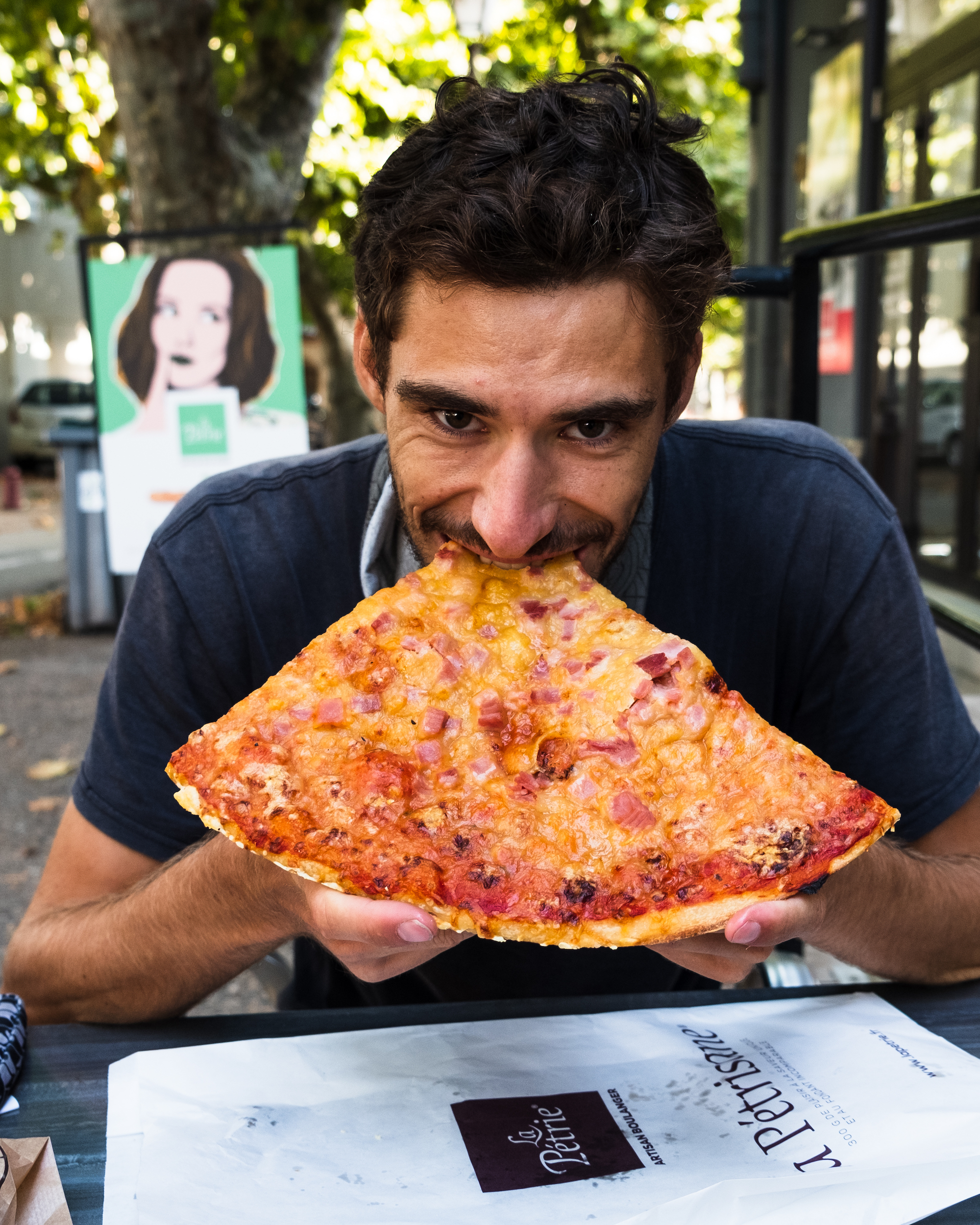 Wake up at 8 am, I wake up like a flower, on my toast I put butter, the train leaves in one hour. Arrival in Avignon around 11 am, we take the road. After 2km, we have to cross the Rhone. Solution 1: to ride 5min to the nearest bridge. Solution 2: to wait 30min to take the free shuttle boat. My friend loves what is free.