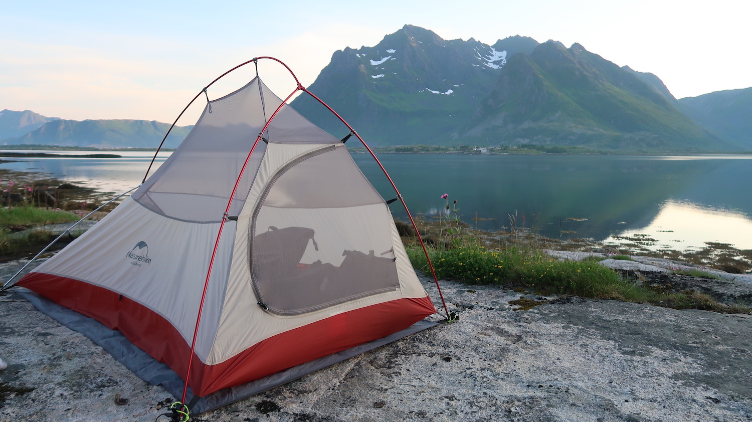 I camped every night of this trip in my 2-man tent. Norway is known as probably the most expensive country in the world but if you cut away the cost for lodging you can actually have a very inexpensive trip. Wild camping is allowed and even encouraged in Norway, although it can be a bit tricky in the crowded Lofoten Islands. But if you just go off the main road for a while you’ll find an abundance of great wild camping sites. I tried to wild camp for three nights straight, then spend one night at a proper campground. That way I was able to take a shower, charge all my electronics and batteries and just hang out with other cyclists and share experiences from the road.