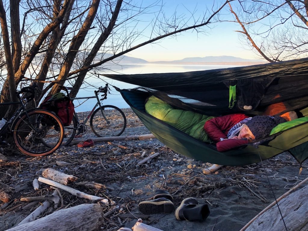 In early March, with the promise of a crisp and clear evening and an additional hour of light, a small group of us kicked off our “midweek bikepacking micro-expedition” season. Leaving at 7 pm on a nondescript Tuesday, we pedaled a handful of miles, just long enough to shake off the workday and feel the sea breeze on our faces. Pushing our bikes across rocky beaches, we slung our cocoons in seaside trees and ate a memorable dinner by bonfire. Waking to the lapping of currents and squawking gulls, we pedaled into work by 9 am the next morning.