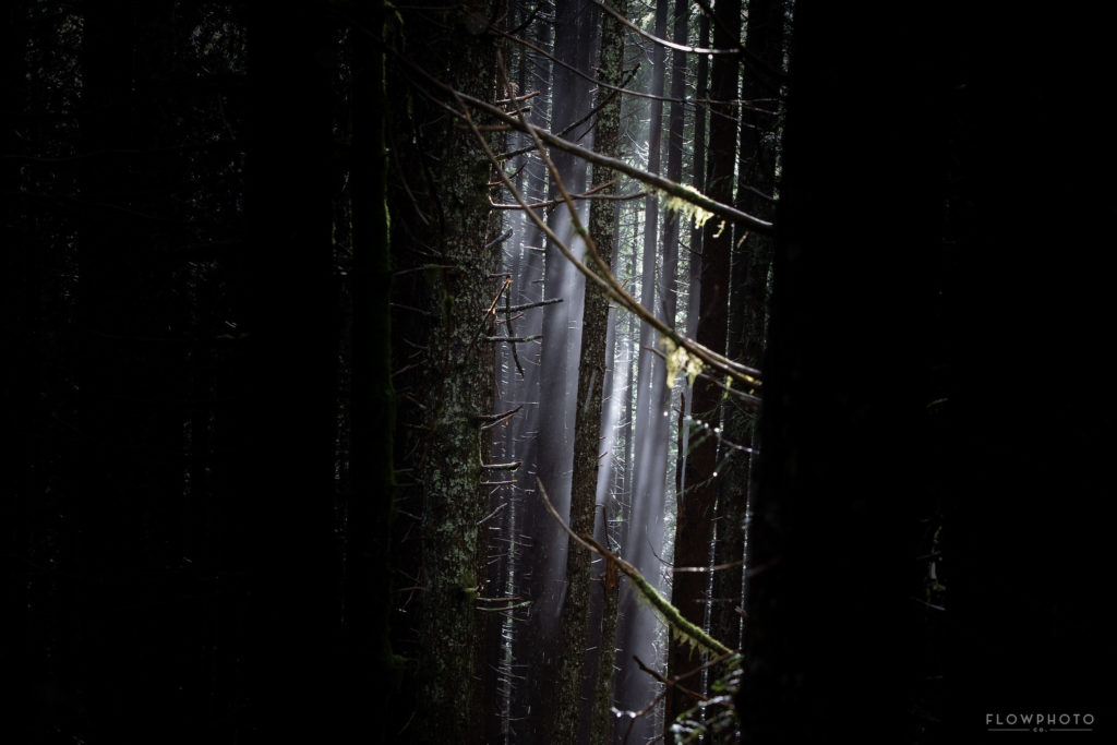 My techniques for capturing light amongst the thick PNW woods has been an artistic process. Often I feel the highlight is the priority which gives the photo a more dramatic look with darker shadows and often leaving the viewer curious for what’s behind the shadows. This I hope leads the viewer to use a bit of their imagination.