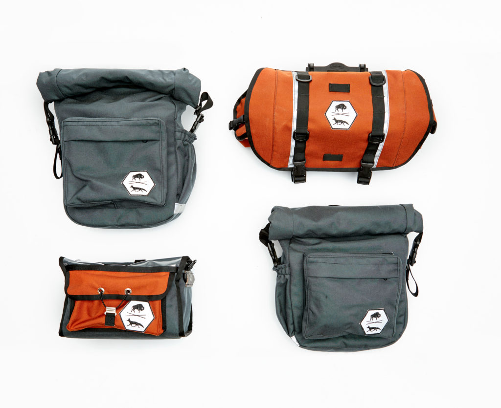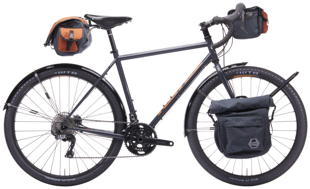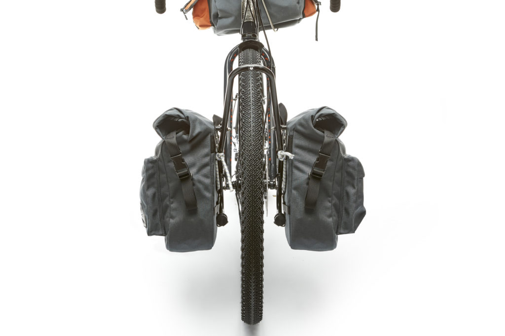 Each bike features Swift Industries Jr. Ranger Panniers, a Paloma handlebar bag, and a Zeitgeist saddlebag.
