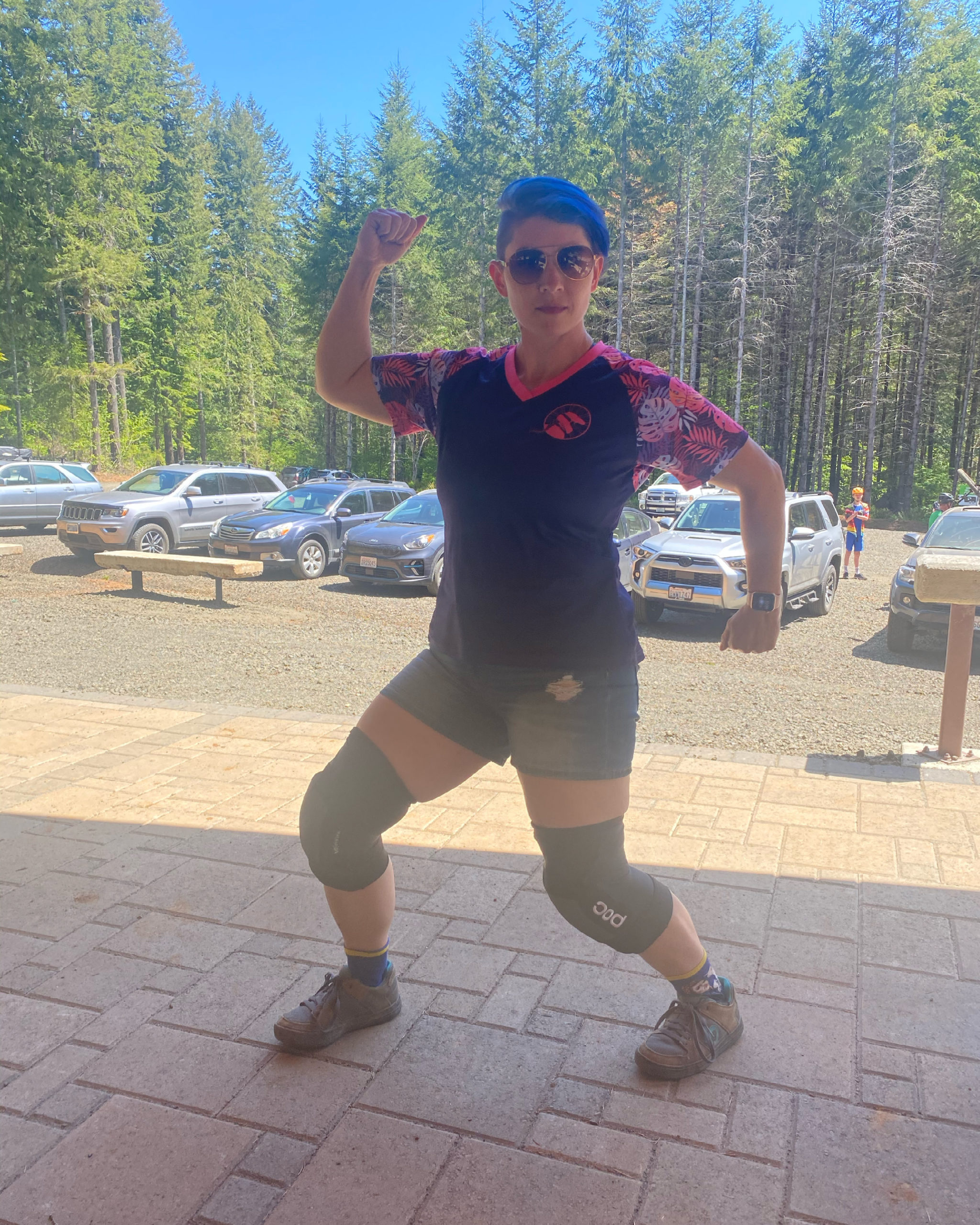My coping mechanism is riding my bike. When I feel like I’m losing myself, I escape to the woods. Long climbs with technical or flowy decents, drain my negativity, give me something to focus on and brings me joy. Admiring the view at the top fills me with gratitude. The beautiful sea of evergreens all around me and the mountain peaks take my breath away. Letting the power of nature fill me with peace and help me process whatever it is I’m trying to escape from. I’m fortunate to have this healthy outlet. One that fills me with joy, and gives me something to improve at and share with others.
