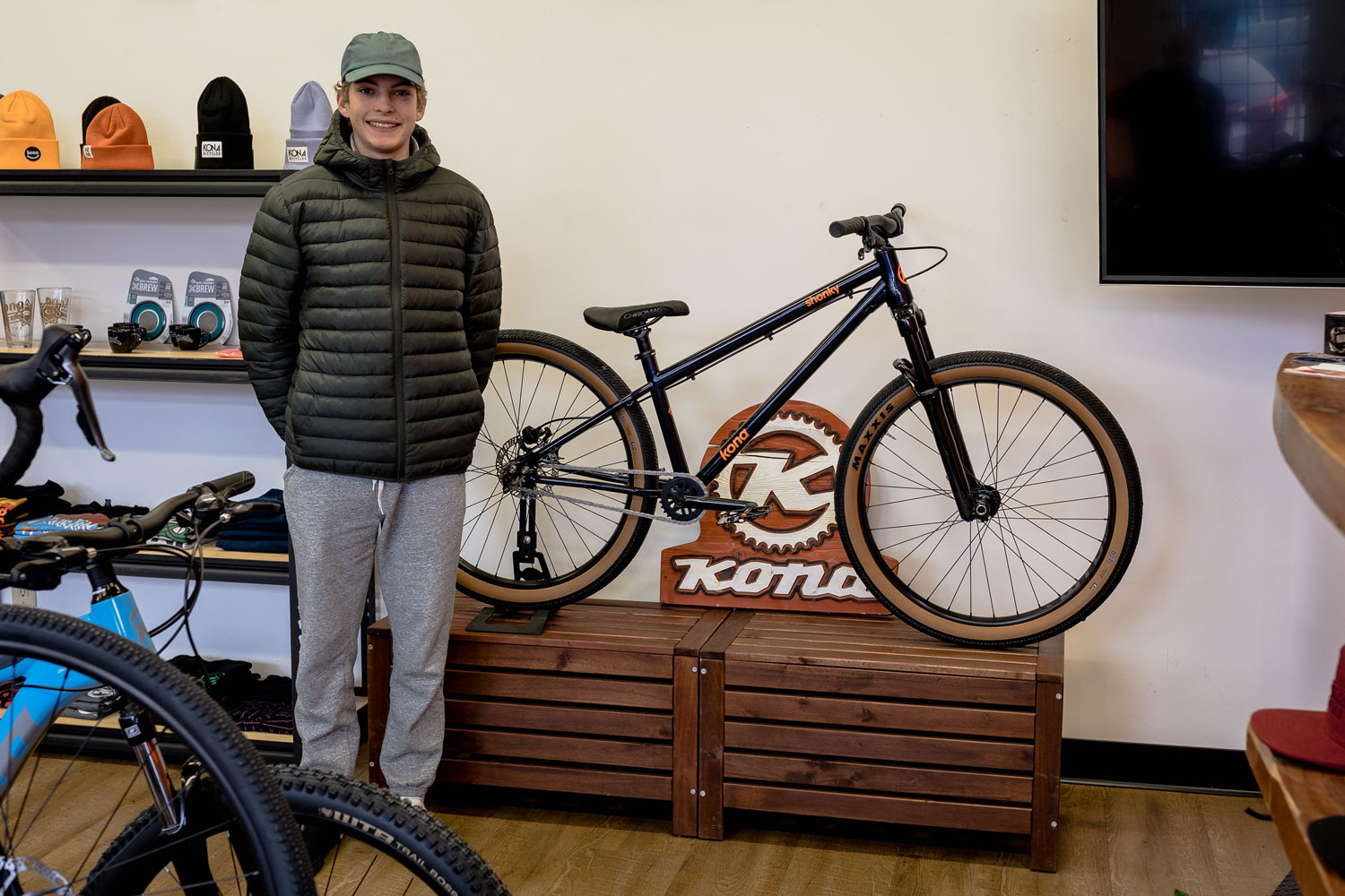 Back in 2022 (it’s so long ago now), we partnered up with our good friends at Pinkbike to giveaway a custom-painted one-of-a-kind Kona Shonky to one of our lucky Instagram followers. The bike was painted by the legends at Fresh Paints Whistler, and as you can see, looks like a million dollars. We are absolutely stoked to share that Vancouver local Jack Ponton won the bike and swung by our North Vancouver showroom to pick it up just before the holidays! We look forward to seeing you out shredding the local pump tracks and dirt jumps, Jack!