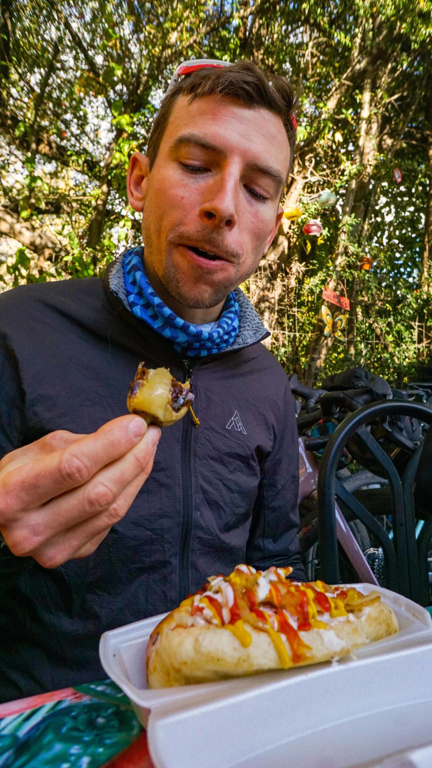 We dropped into Patagonia on more snaking canyon roads, first dirt, then paved, arriving in Patagonia with plenty of time for burritos and a chance to scarf down my first Sonoran dog (bacon wrapped hot dog).